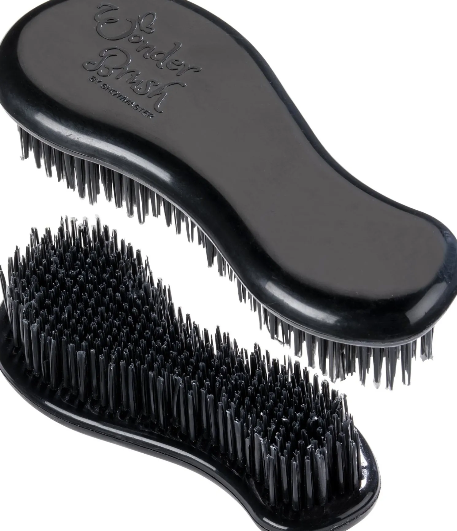 L’indispensable ! Particulièrement polyvalente et pratique. Poils spéciaux qui facilitent le nettoyage de la robe et des sabots. Forme ergonomique très agréable. Découpe permettant de brosser aussi bien des grandes que des petites parties du corps. Poils extrêmement doux pour un nettoyage ou massage des zones sensibles du corps telles que la tête ou derrière les oreilles. Également pour les chiens. 16 x 6,5 ou 5cm. Disponible en deux versions : Référence 431 964 : SOFT avec des poils souples. Pour le nettoyage des parties sensibles du corps comme la tête ou derrière les oreilles. Pour les chiens. Pour brosser les vêtements. Référence 431 965 : HARD avec des poils durs. Pour décoller sans effort les poils aggloméré par la sueur. Pour nettoyer les sabots. Dimensions : 16 x 6,5 ou 5 cm.