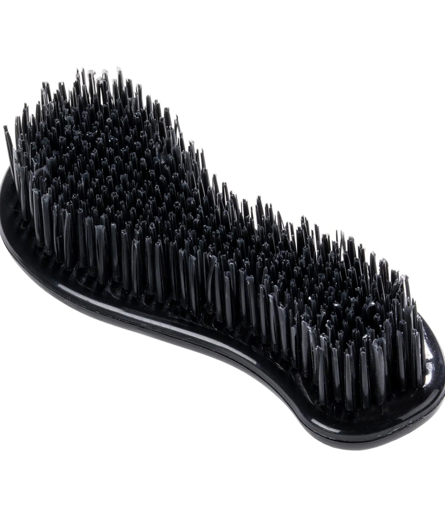 L’indispensable ! Particulièrement polyvalente et pratique. Poils spéciaux qui facilitent le nettoyage de la robe et des sabots. Forme ergonomique très agréable. Forme permettant de brosser aussi bien des grandes que des petites parties du corps. Poils extrêmement doux pour le nettoyage ou le massage des zones sensibles du corps telles que la tête ou derrière les oreilles. Peut être utilisée pour les chiens. 16 x 6,5 ou 5cm. Disponible en deux versions : Référence 431 964 : SOFT avec des poils souples. Pour le nettoyage des parties sensibles du corps comme la tête ou derrière les oreilles. Peut être utilisé pour les chiens. Convient aussi pour brosser les vêtements. Référence 431 965 : HARD avec des poils durs. Pour décoller sans effort les poils agglomérés par la sueur. Peut être utilisé pour nettoyer les sabots. Dimensions : 16 x 6,5 ou 5 cm.