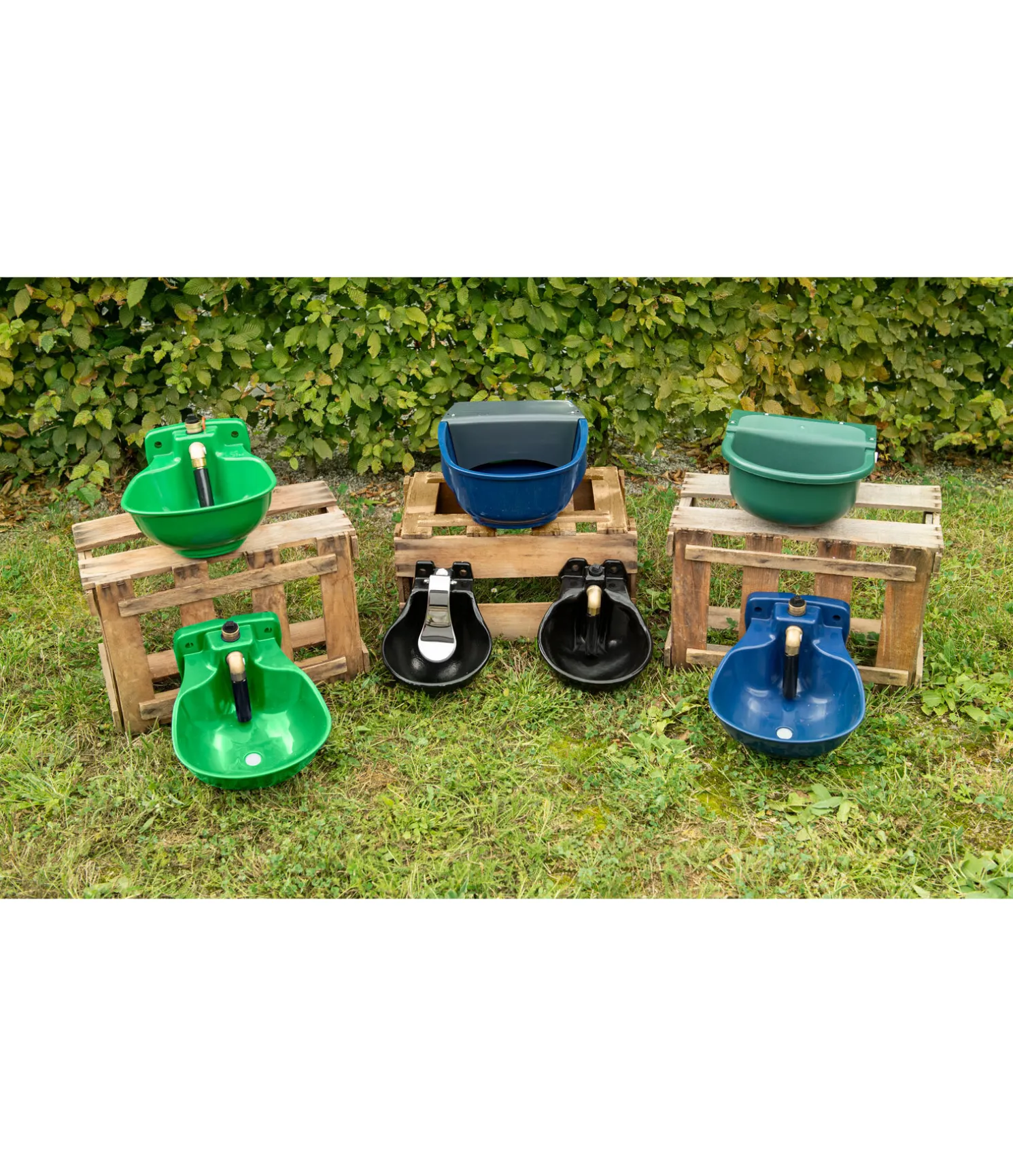 Abreuvoir chauffant en plastique 230 V avec robinet en laiton facile à manipuler pour réguler le débit d’eau et thermostat antigel intégré (température d’activation env. +5 °C, température de désactivation env. +13 °C). Volume de l’abreuvoir 2,8 L, raccord 1/2 » femelle par le haut ou par le bas, câble chauffant intégré (env. 73 W) 230 V avec câble de raccordement de 2 mètres pour le chauffage des tuyaux. Câble chauffant facile à remplacer. Débit d’eau réglable (jusqu’à 11 Ll/min). Convient aux systèmes de chauffage à circulation. Avec bouchon de vidange pour un nettoyage facile. Convient pour un montage sur tuyau ou mural. Poids environ 2 kg. Volume du bol 2,8 litres. Résistant au gel jusqu’à env. -25°C