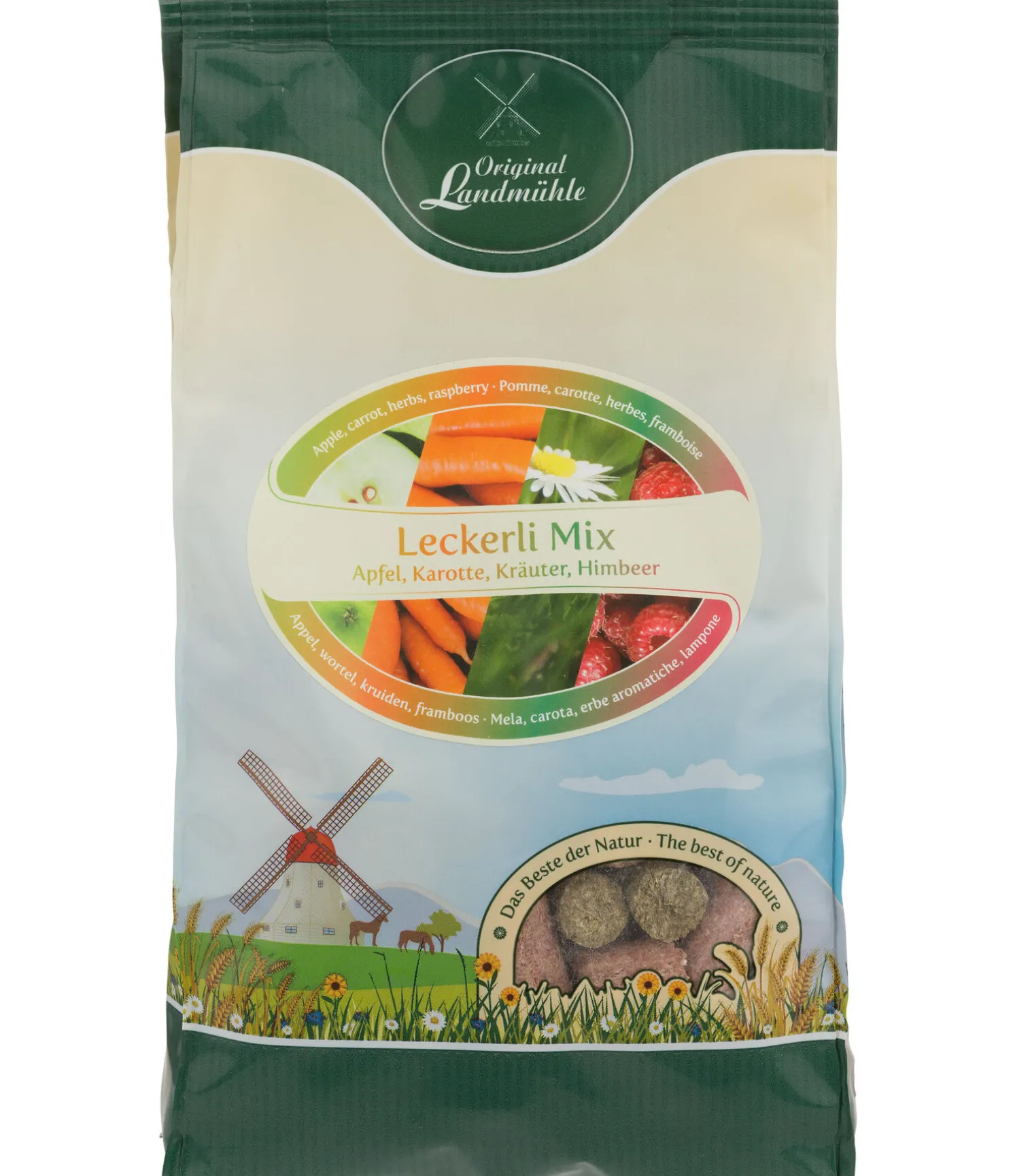 Assortiment de friandises de grande qualité aux quatre saveurs, pour varier les récompenses de votre compagnon. Saveurs : pomme, carotte, framboise et herbes.