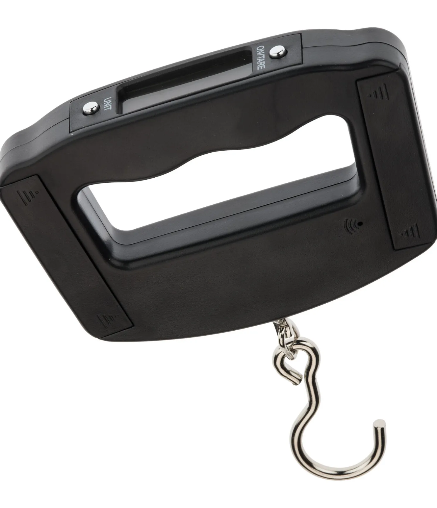 Balance digitale pour aliments avec crochet pratique pour accrocher les filets à foin. Charge maximale de 50 kg.