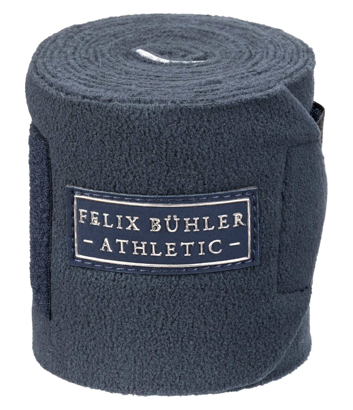 Bandes en polaire souples et douces avec patte auto-agrippante pour un maintien sûr. Logo avec impression 3D métallisée de haute qualité. 100 % polyester. Vendues par lot de 4.