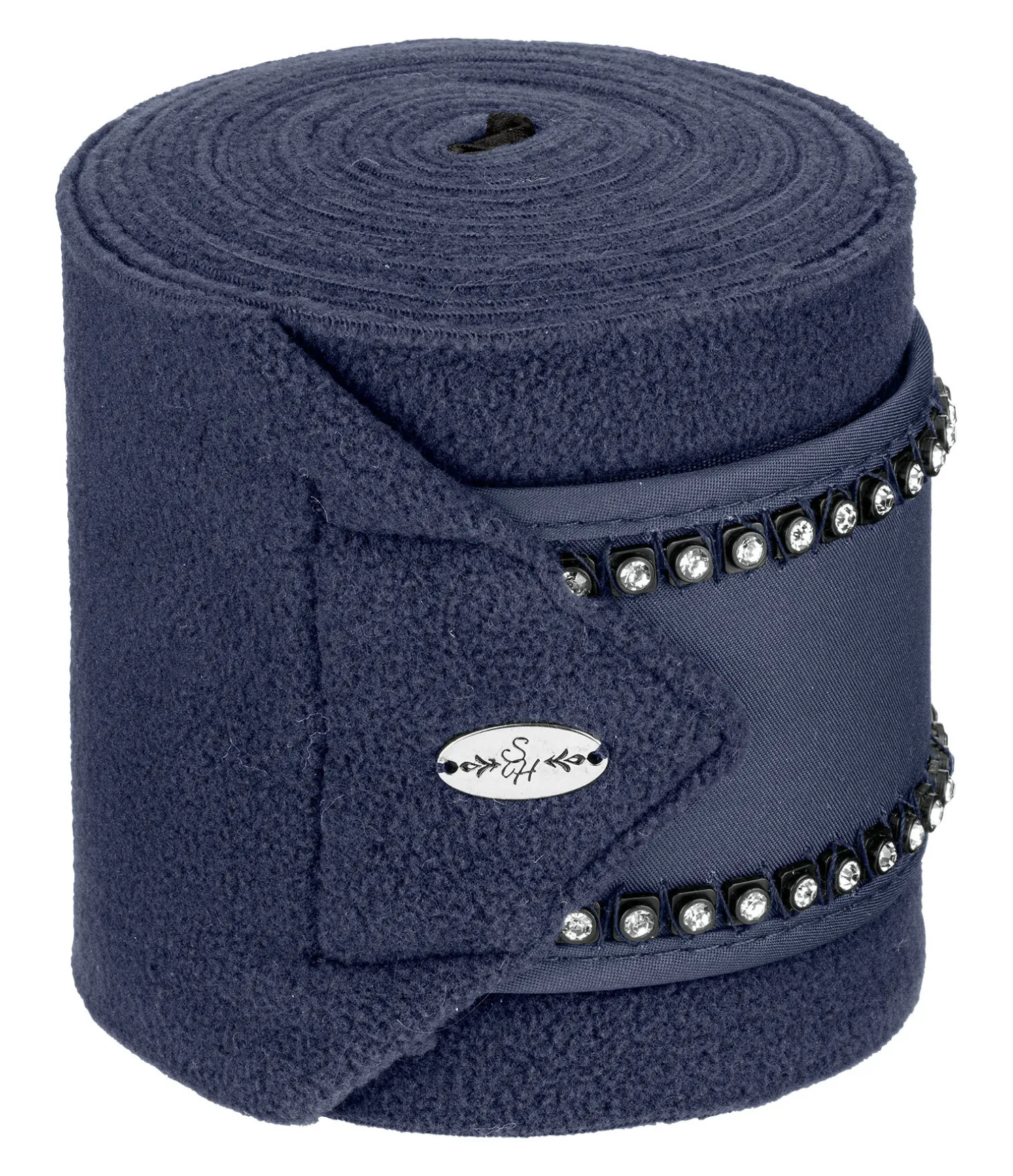 Bandes de polo en polaire. Passepoil avec strass sur la fermeture des bandes. Patte auto-agrippante pour un maintien sûr. 100 % polyester. F (cheval) : 300 x 10 cm, P (poney) : 200 x 8 cm. Vendues par lot de 4.