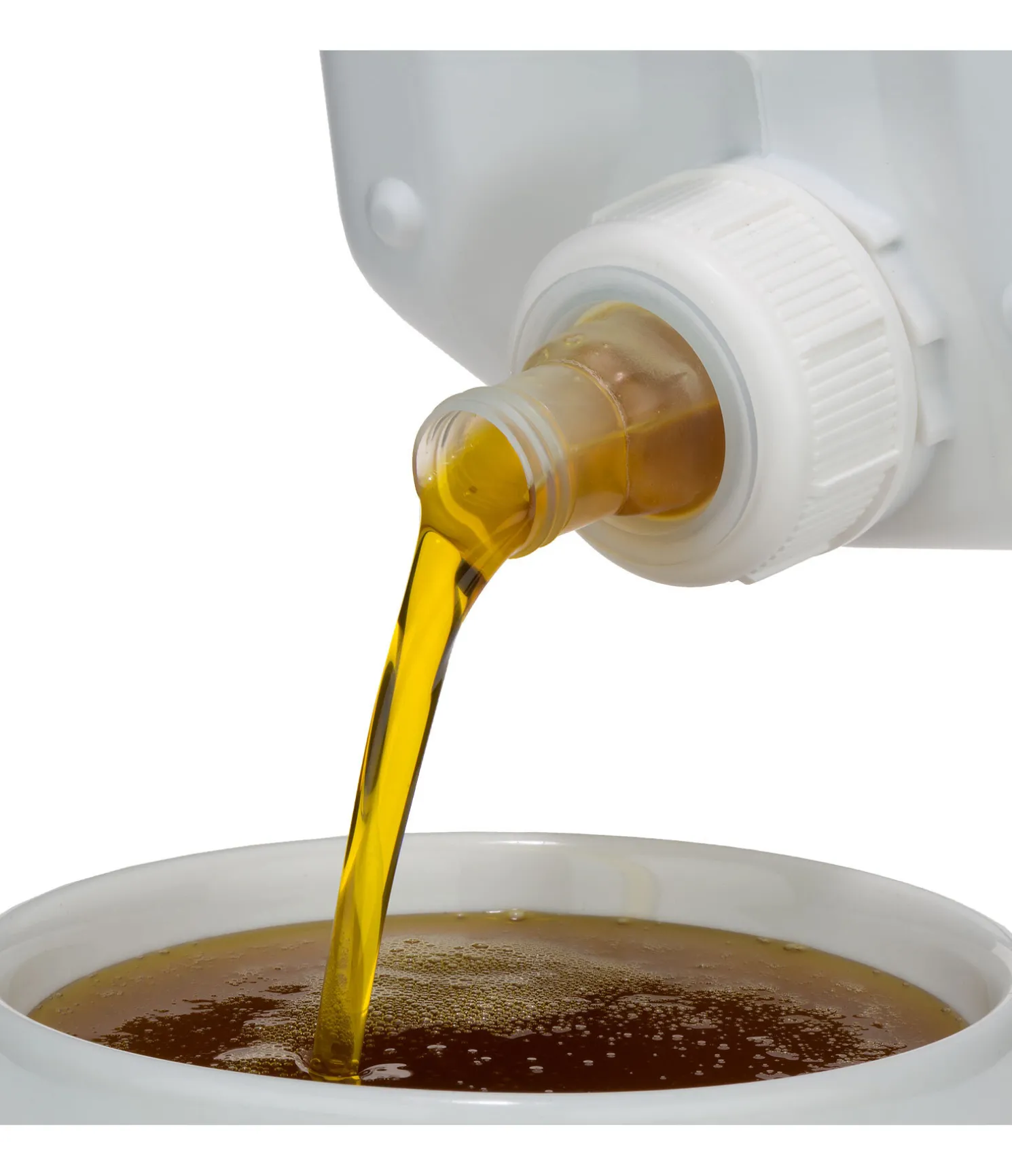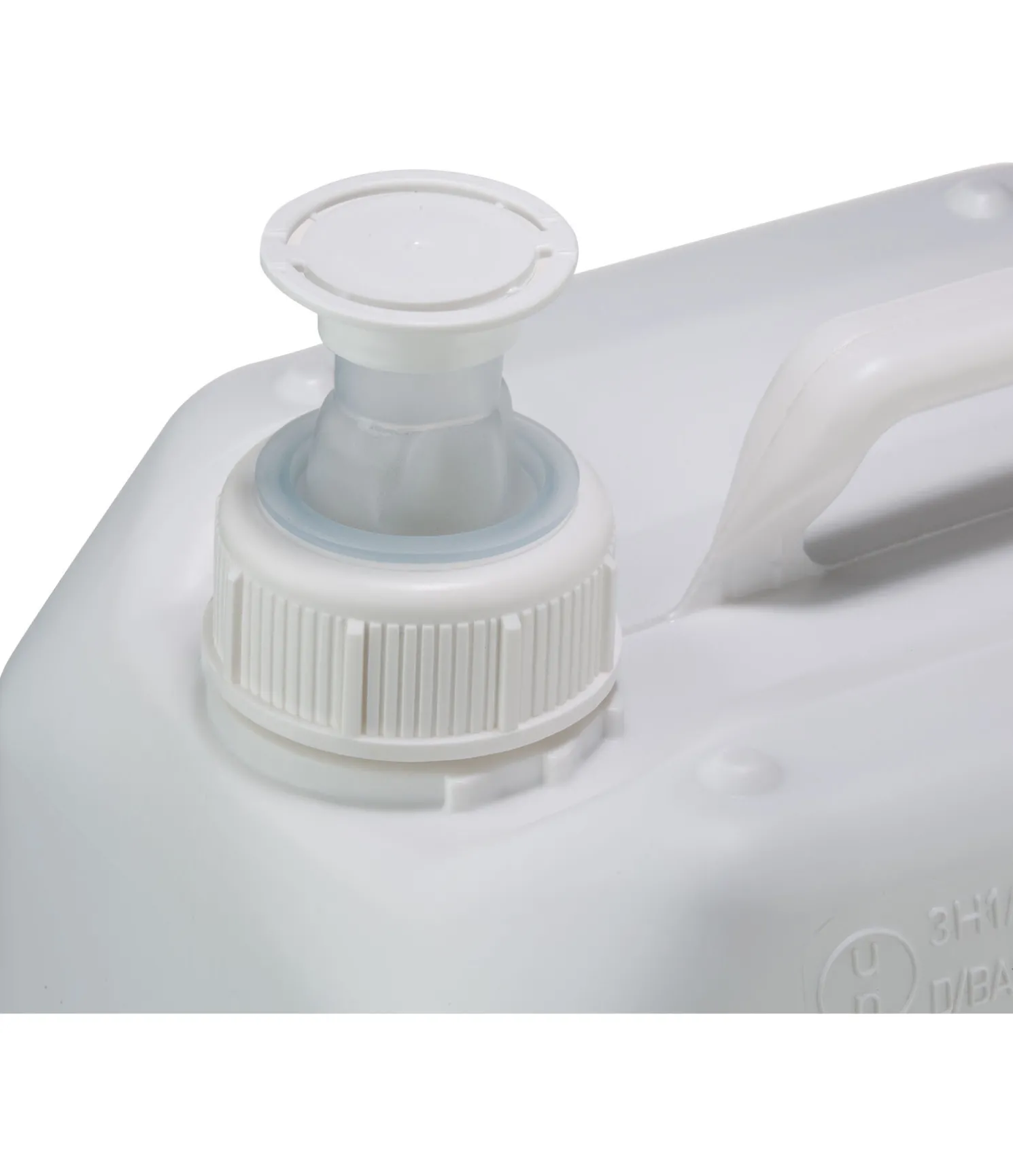 Bouchon avec bec verseur. À visser simplement sur le bidon, puis tirer le bec vers le haut et l’ouvrir. Le contenu du bidon peut ainsi être transvasé facilement dans un flacon plus petit, sans en renverser partout !