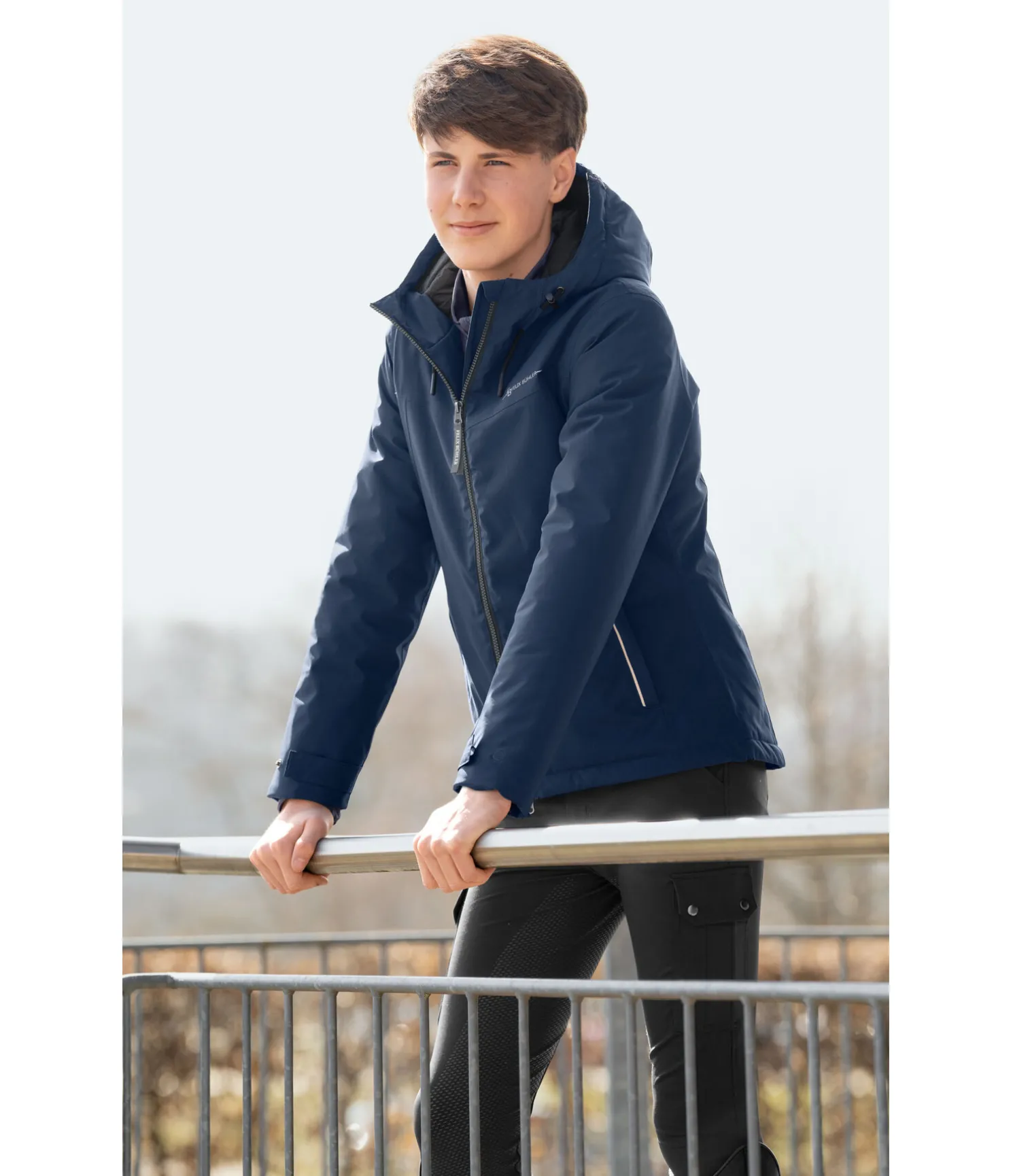 Blouson d’équitation court très technique avec capuche. Garnissage chaud en imitation duvet. Très imperméable (10.000 mm), coupe-vent et respirant. 2 poches zippées, fermeture à glissière double sens avec sous-patte, taille réglable, capuche ajustable par cordon de serrage, bas des manches réglable. Imprimé Felix Bühler réfléchissant sur la poitrine. 100 % polyester, doublure 100 % nylon.