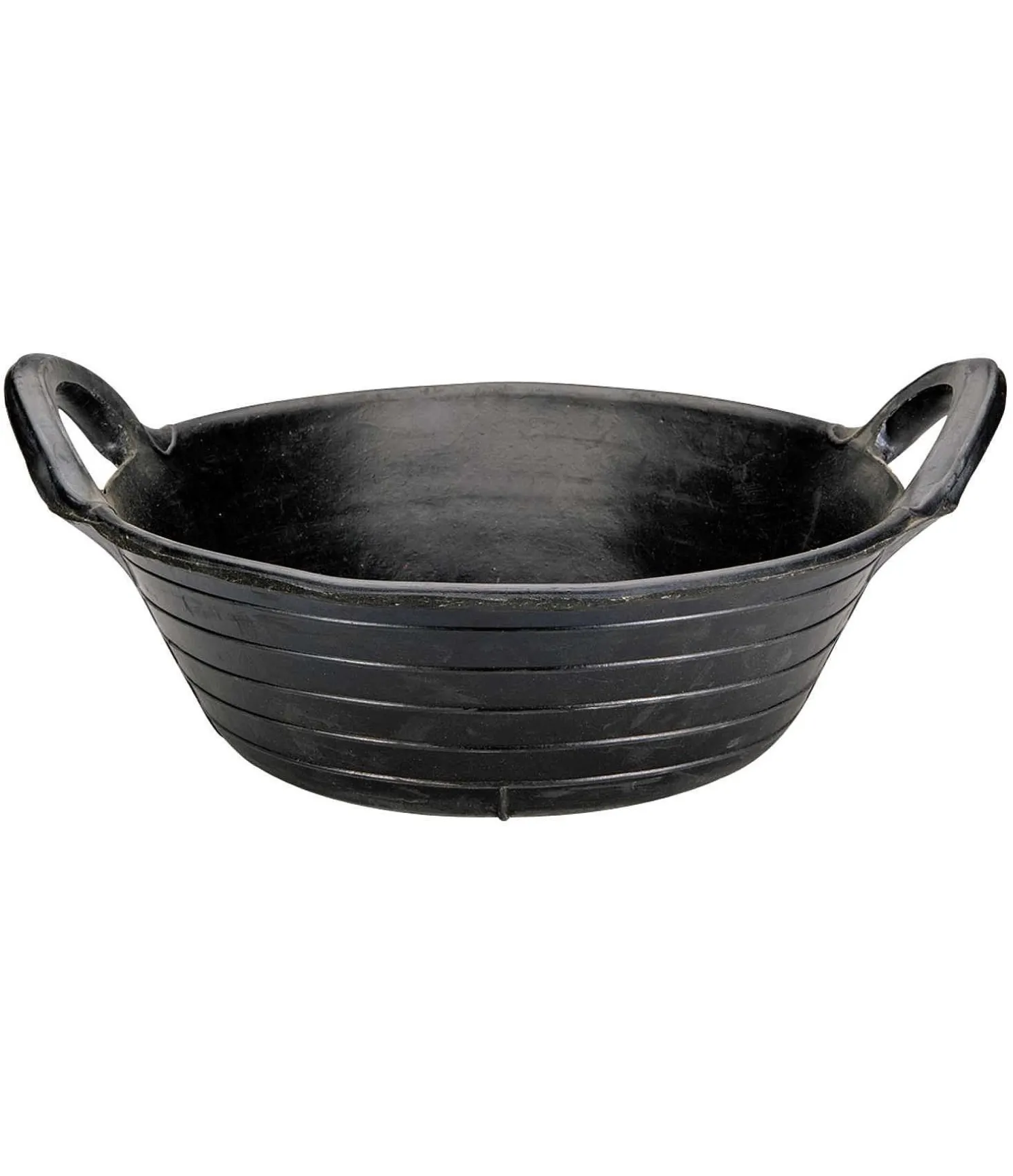Bol pour cheval. Maniable grâce à ses deux poignées. Pour toutes les utilisations, en déplacement ou au pré. En caoutchouc résistant. Hauteur 14 cm, diamètre 27 cm. 10 litres. À laver avant toute utilisation.