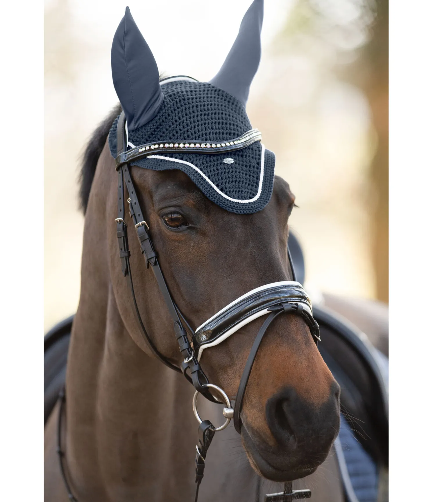Bonnet anti-mouches classique en maille crochetée avec cordon décoratif satiné discret de couleur contrastante. Matière extensible aux oreilles. Petite plaque argentée filigrane avec logo gravé. Maille 100 % polyester, matière extensible 97 % polyester, 3 % élasthanne.