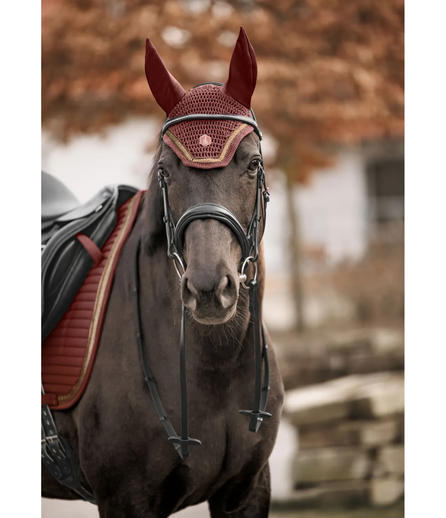 Élégant bonnet anti-mouches avec bordure en strass et logo. Matière extensible aux oreilles pour un confort optimal. Bonnet 100 % polyester, oreilles 88 % polyester, 12 % élasthanne.