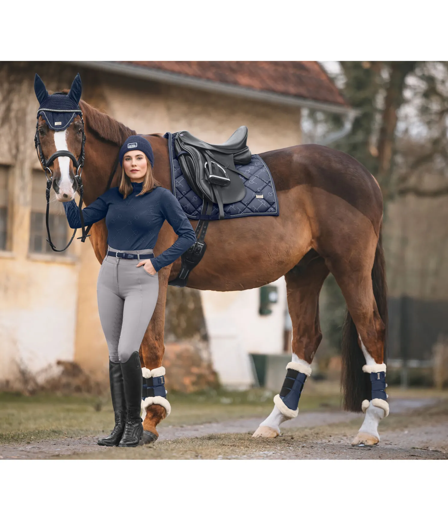 Bonnet anti-mouches en maille crochetée classique et imprimé all-over tendance à motif mors. Élégante plaque logo métallique et cordon décoratif anthracite. Matière extensible aux oreilles pour un confort optimal. Bonnet 100 % polyester, oreilles 88 % polyester, 12 % élasthanne.