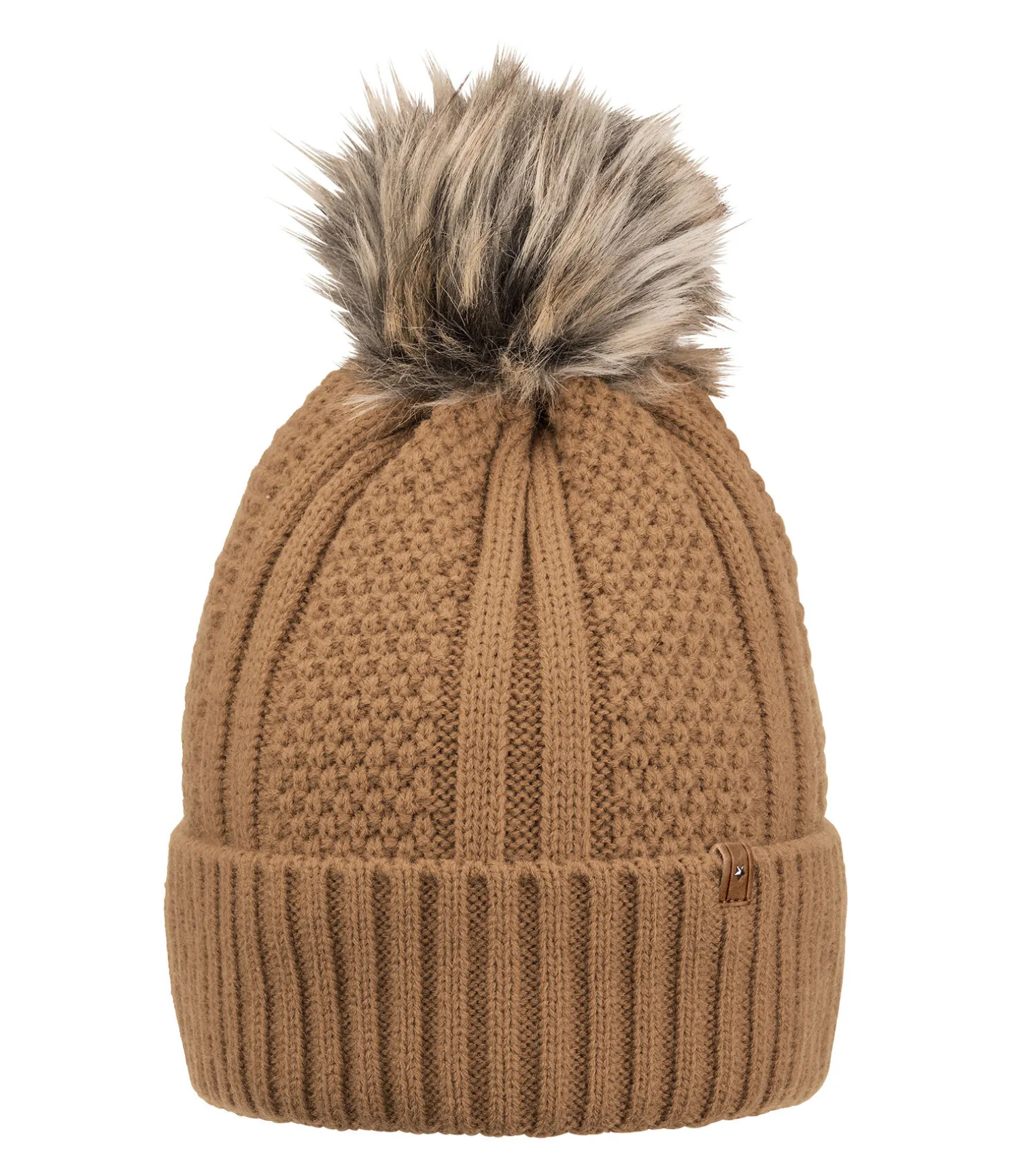 Bonnet à revers en maille avec pompon en fourrure synthétique. Doublure intérieure en polaire chaude. 100 % polyacrylique, doublure 100 % polyester.