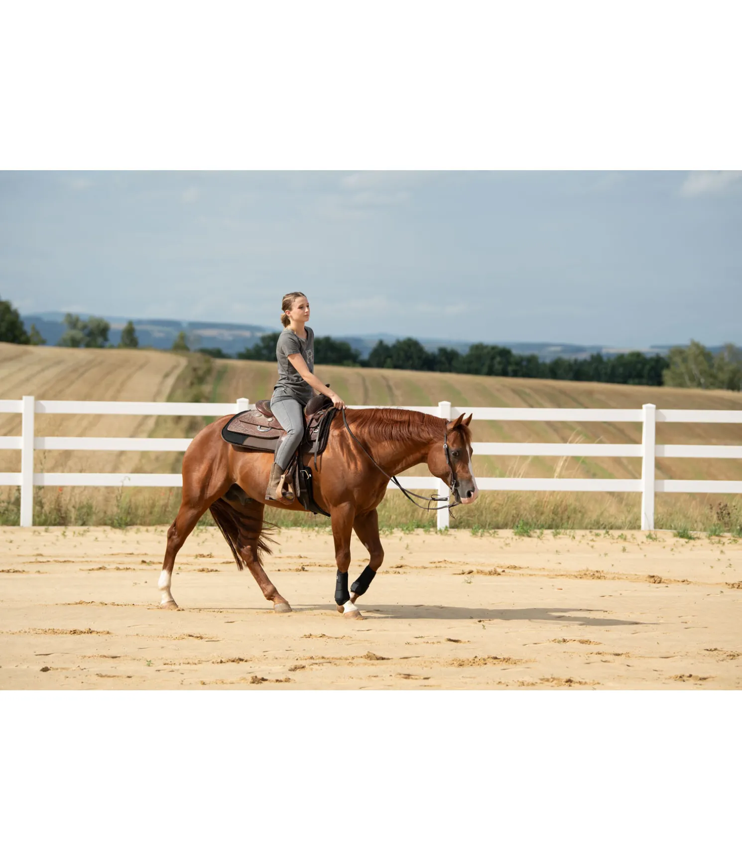 Boots anatomiques légères et respirantes de RANCH-X. Bonne absorption des chocs afin de réduire l’impact sur l’ossature du cheval. Matière perforée qui assure une élasticité optimale pour une protection à 360°. Bordure extensible empêchant la saleté de pénétrer. 100 % caoutchouc-chloroprène. Vendues par paire