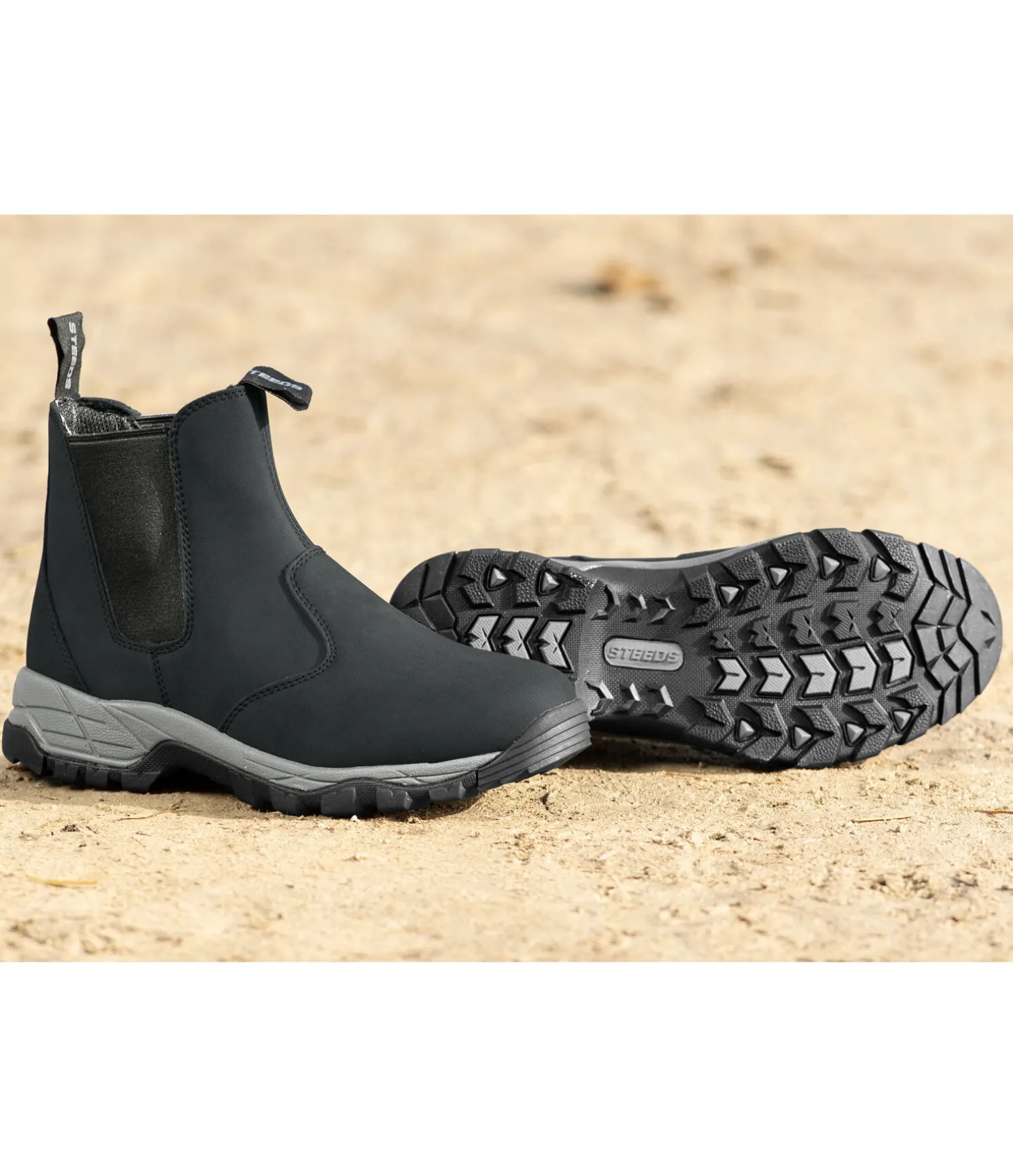 Bottines à enfiler résistantes. Assise plantaire très confortable grâce à une semelle double épaisseur (semelle intermédiaire en EVA doux, semelle extérieure en caoutchouc antidérapant). Facile à mettre et à enlever grâce aux empiècements élastiques des 2 côtés et aux tirants. Dessus en PU. Doublure intérieure en tissu mesh respirant.
