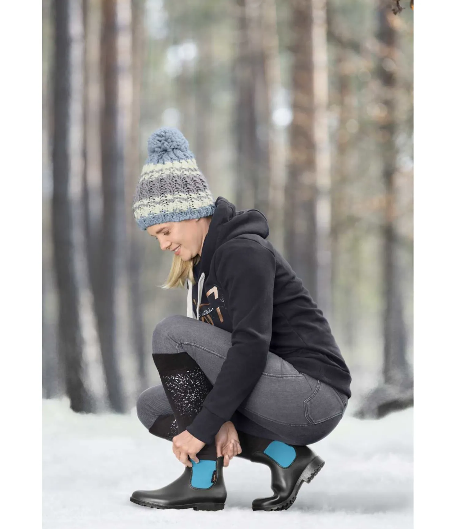 Bottines d’hiver en PVC avec doublure chaude en polaire Teddy (100 % polyester). Avec talon cavalier et semelle extérieure résistante. Les empiècements élastiques latéraux permettent un enfilage facile.