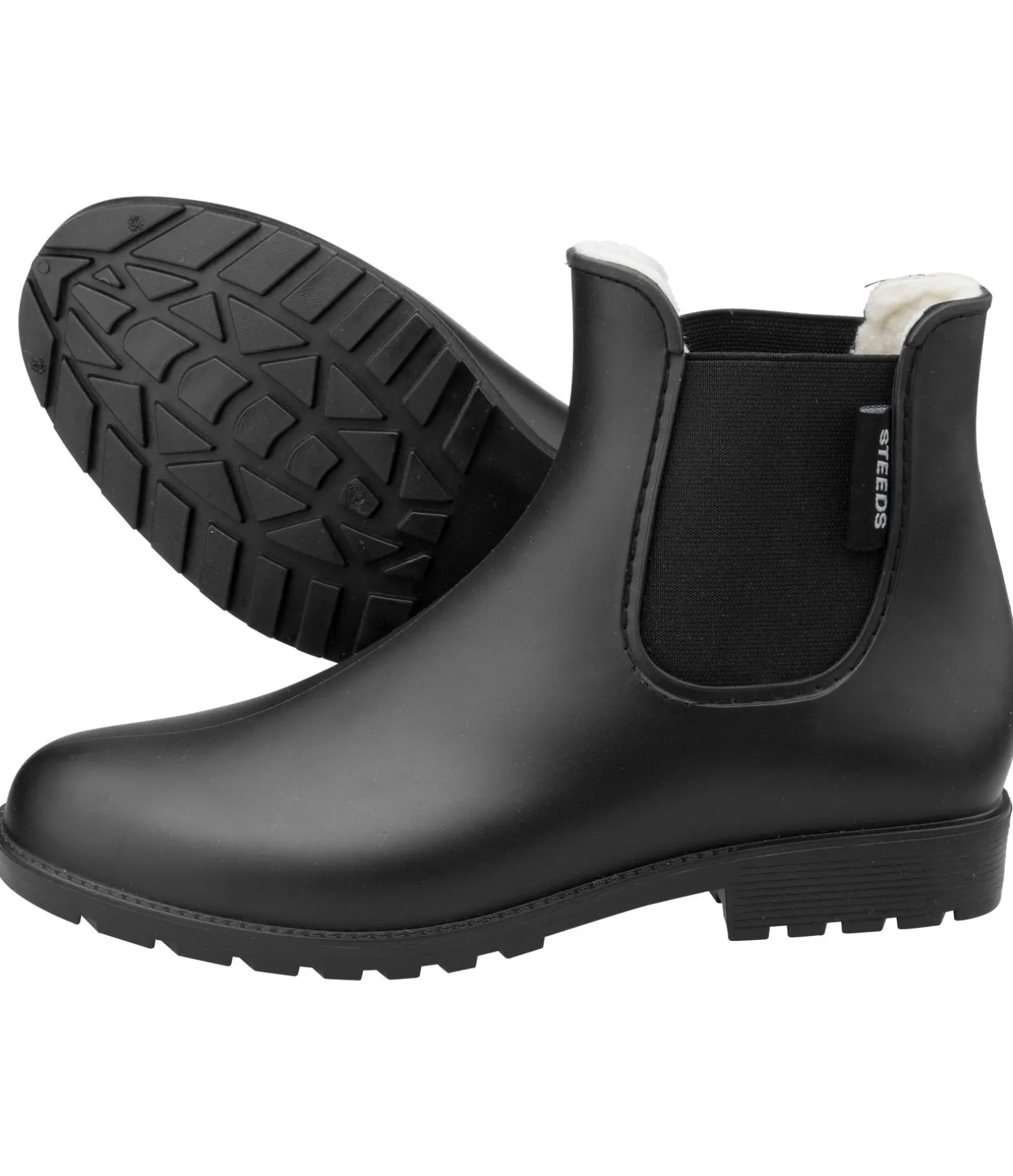 Bottines d’hiver en PVC avec doublure chaude en polaire Teddy (100 % polyester). Avec talon cavalier et semelle extérieure résistante. Les empiècements élastiques latéraux permettent un enfilage facile.