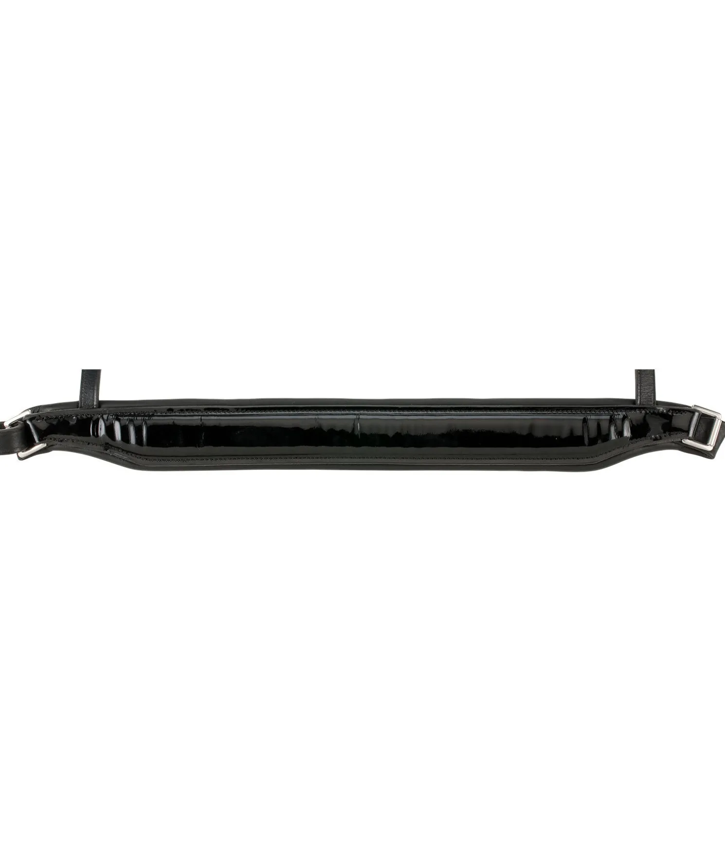 Bridon en cuir gras de qualité supérieure avec muserolle suédoise anatomique qui, grâce à sa coupe, offre plus de place au mors de bride. Le cuir travaillé avec soin est particulièrement doux et souple. Il assure une répartition optimale de la pression et l’allège au mieux au niveau des oreilles, de la première vertèbre cervicale et du chanfrein. Pad de menton avec doublure douce. Frontal vague avec strass blancs. La muserolle en cuir verni est le point fort de ce bridon. Il est également doublé d’un rembourrage en cuir doux véritable. Porte-mors à crochets. Avec rênes, sans mors.