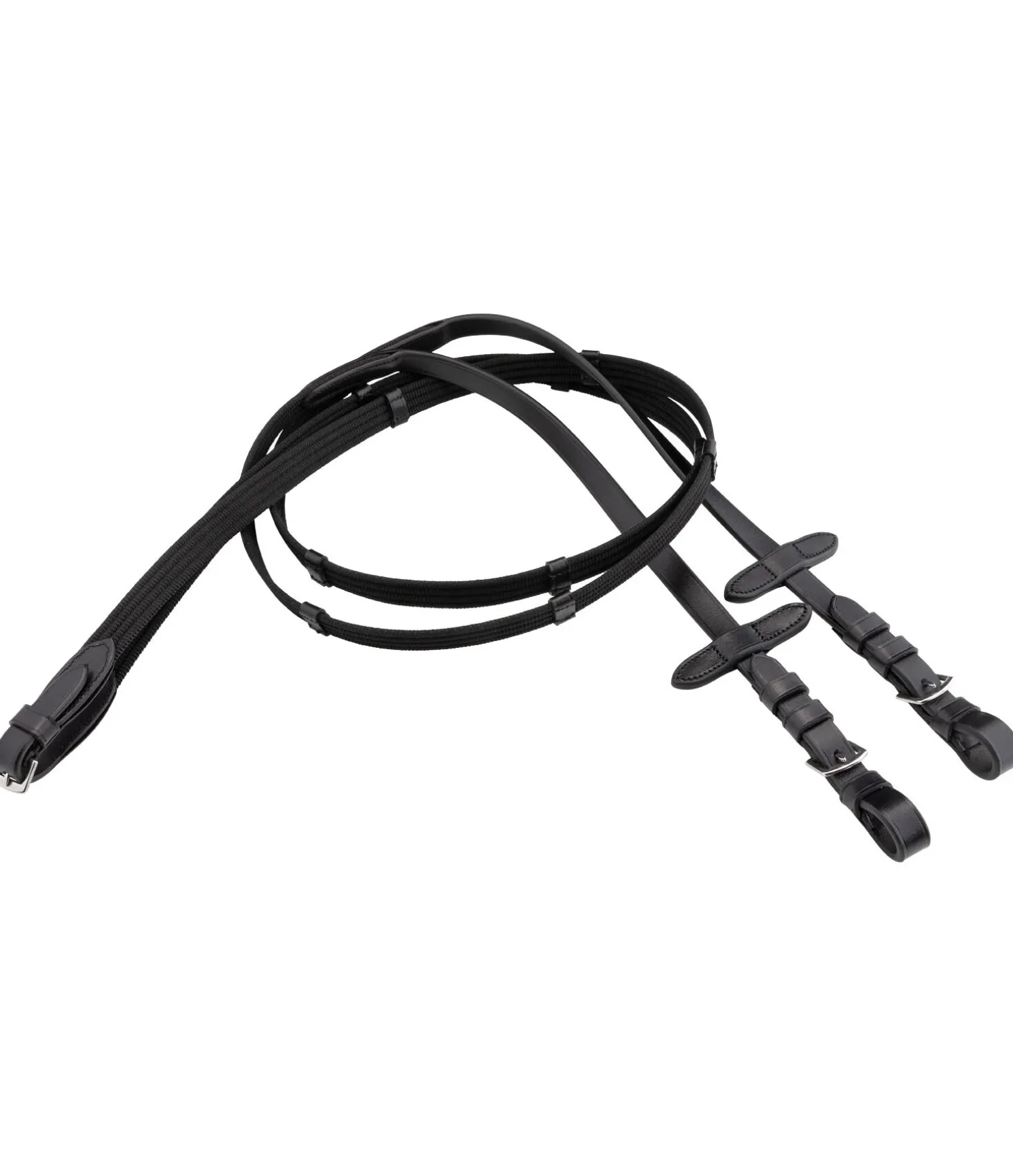 Bridon en cuir classique, têtière anatomique doublée d’une matelassure douce pour une meilleure répartition des pressions. Large muserolle française combinée avec élégante doublure blanche. Frontal vague orné de strass scintillants. Avec rênes, sans mors.