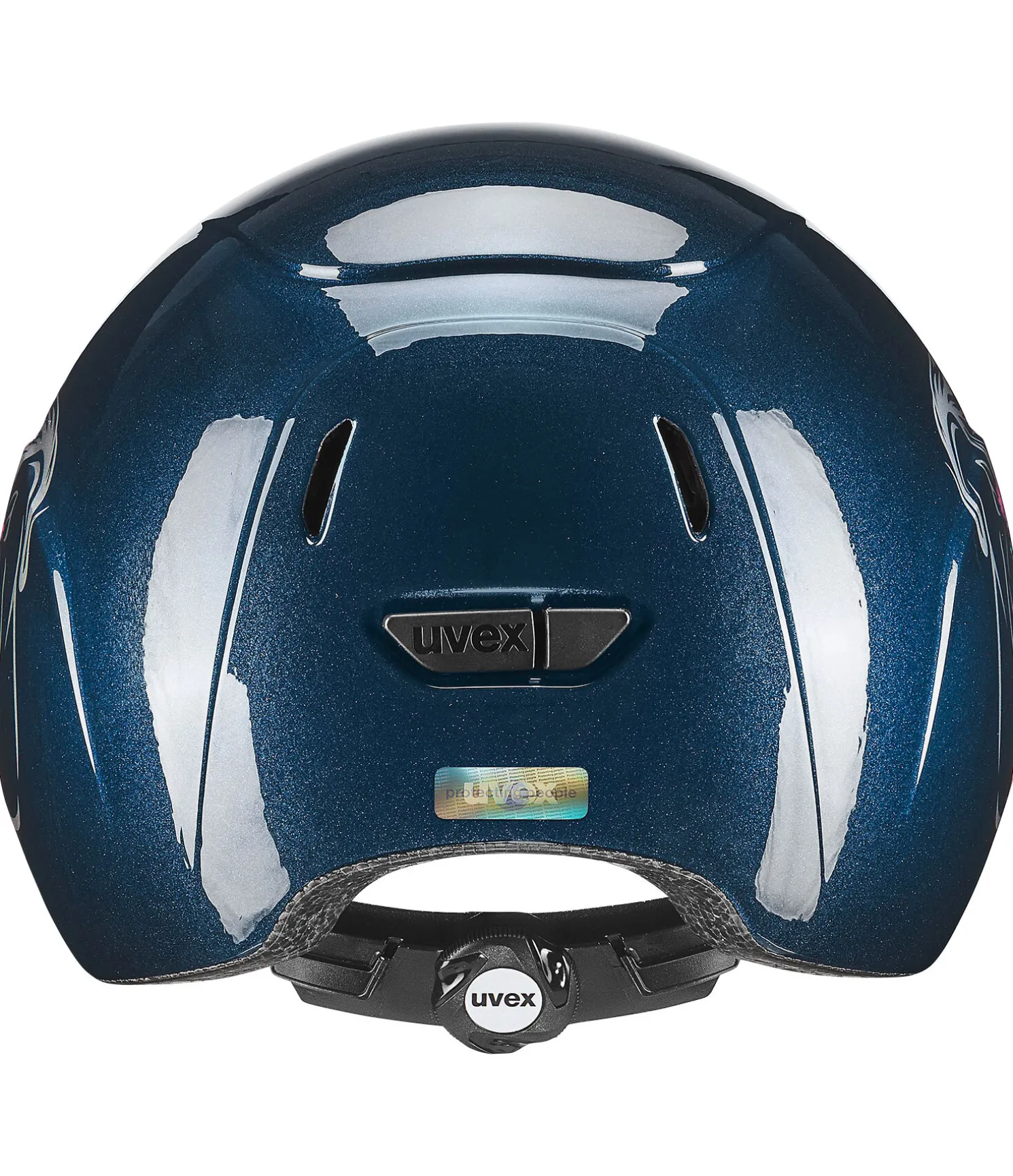 Casque d’équitation enfant avec surface scintillante et motif stylé. Ce casque se règle en continu de la taille 49 à 54. La technologie In-Mold, l’ajustement de taille 3D IAS éprouvé ainsi que le système de sangle FAS avec fermeture Monomatic garantissent une sécurité inégalée. Certifié selon la norme EN1384:2023.