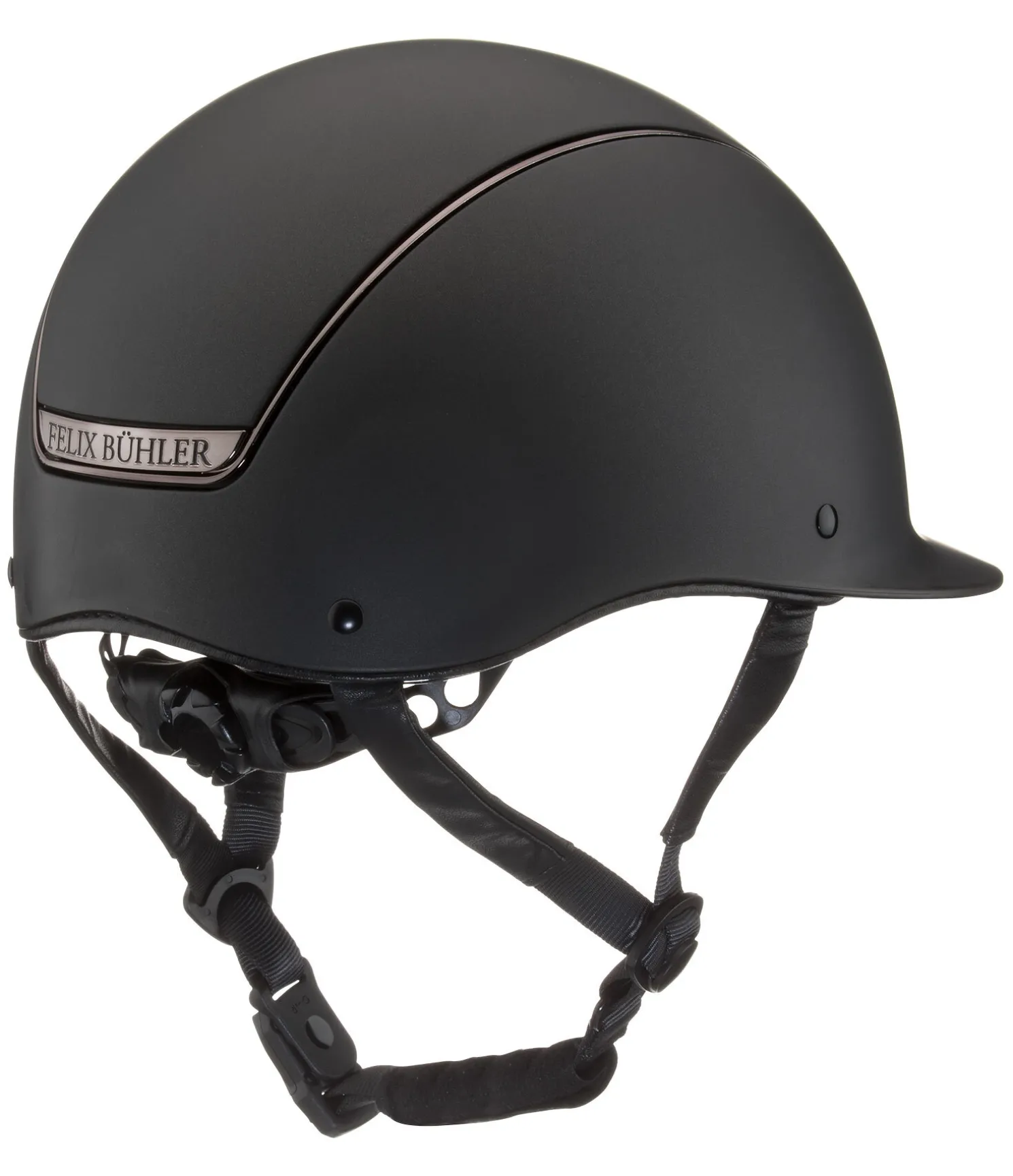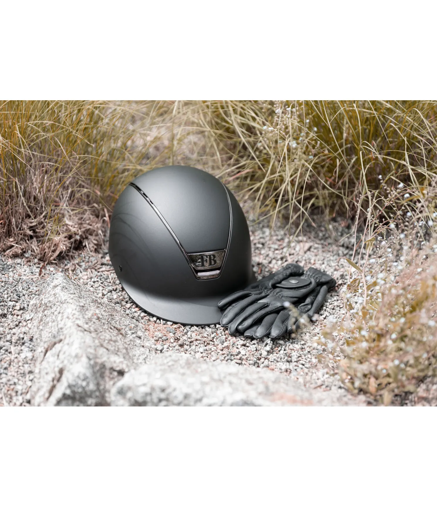 Avec ses nombreuses innovations, ce casque d’équitation Felix Bühler haut de gamme se distingue par sa légèreté et son design élégant. Pour garantir un niveau de sécurité maximal, ce casque est doté de la technologie Hardshell avec une coque extérieure résistante aux chocs. Les ouvertures à l’avant assurent une aération optimale sur l’ensemble de la tête grâce à des canaux de ventilation internes passant de l’avant à l’arrière du casque. La doublure intérieure absorbant l’humidité est amovible et lavable à 30°C. Le casque dispose d’une fermeture magnétique innovante pour une ouverture à une seule main, facile et rapide. Grâce à la fonction Easy-Lock/No-Unlock, l’aimant verrouille l’attache dès que la boucle est approchée du fermoir. L’ouverture accidentelle du fermoir en tirant ou en tournant la boucle est impossible. Celle-ci ne peut être déverrouillée qu’en appuyant fermement sur le bouton Unlock situé sur le côté. La molette à l’arrière du casque permet un ajustement à la circonférence de la tête précis au millimètre près. Les sangles recouvertes soulignent le design raffiné du casque et disposent de coussinets au niveau de la nuque et du menton pour garantir un confort de port optimal au cavalier. Ce casque d’équitation est certifié selon la norme EN1384:2023.