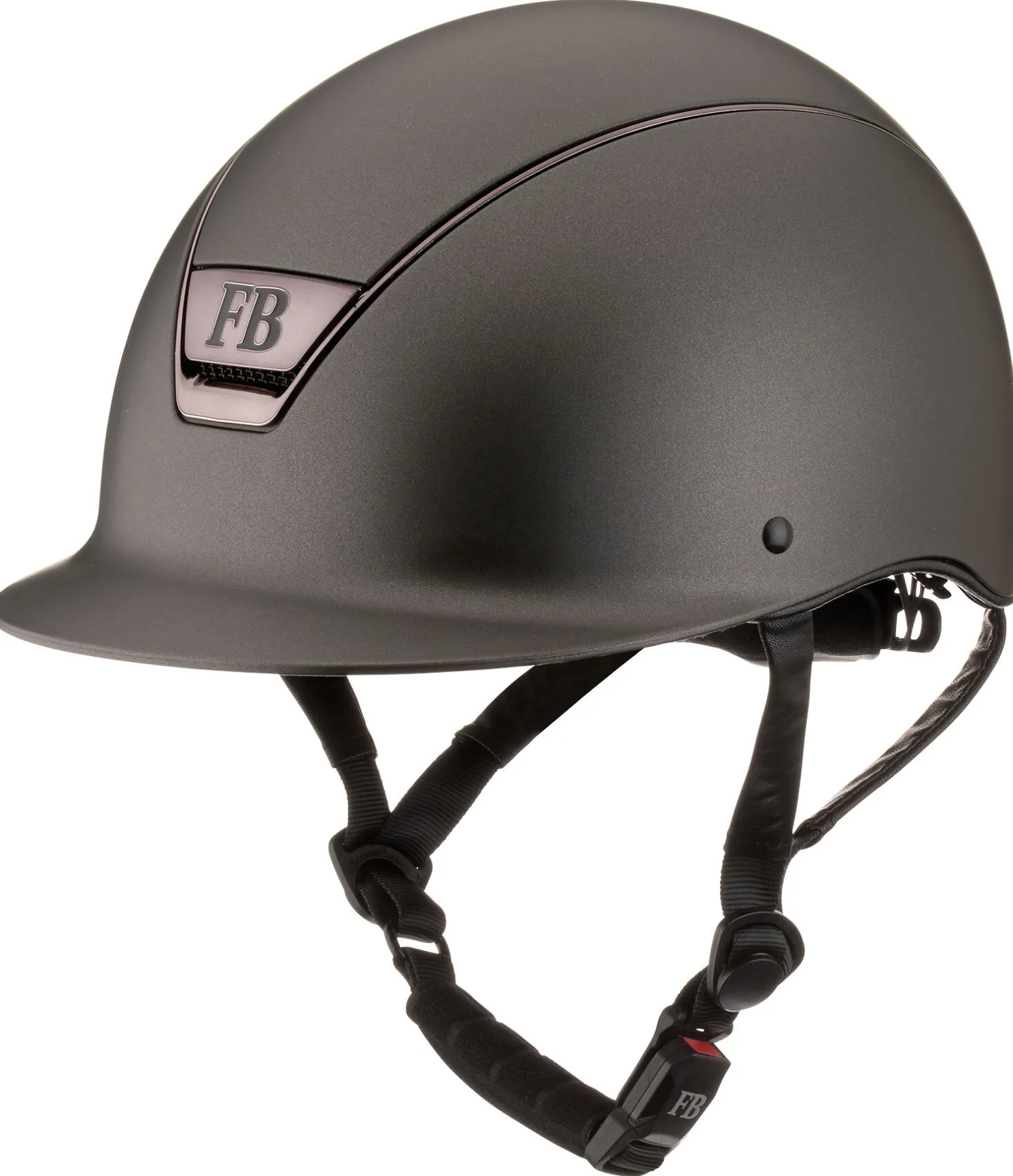 Avec ses nombreuses innovations, ce casque d’équitation Felix Bühler haut de gamme se distingue par sa légèreté et son design élégant. Pour garantir un niveau de sécurité maximal, ce casque est doté de la technologie Hardshell avec une coque extérieure résistante aux chocs. Les ouvertures à l’avant assurent une aération optimale sur l’ensemble de la tête grâce à des canaux de ventilation internes passant de l’avant à l’arrière du casque. La doublure intérieure absorbant l’humidité est amovible et lavable à 30°C. Le casque dispose d’une fermeture magnétique innovante pour une ouverture à une seule main, facile et rapide. Grâce à la fonction Easy-Lock/No-Unlock, l’aimant verrouille l’attache dès que la boucle est approchée du fermoir. L’ouverture accidentelle du fermoir en tirant ou en tournant la boucle est impossible. Celle-ci ne peut être déverrouillée qu’en appuyant fermement sur le bouton Unlock situé sur le côté. La molette à l’arrière du casque permet un ajustement à la circonférence de la tête précis au millimètre près. Les sangles recouvertes soulignent le design raffiné du casque et disposent de coussinets au niveau de la nuque et du menton pour garantir un confort de port optimal au cavalier. Ce casque d’équitation est certifié selon la norme EN1384:2023.