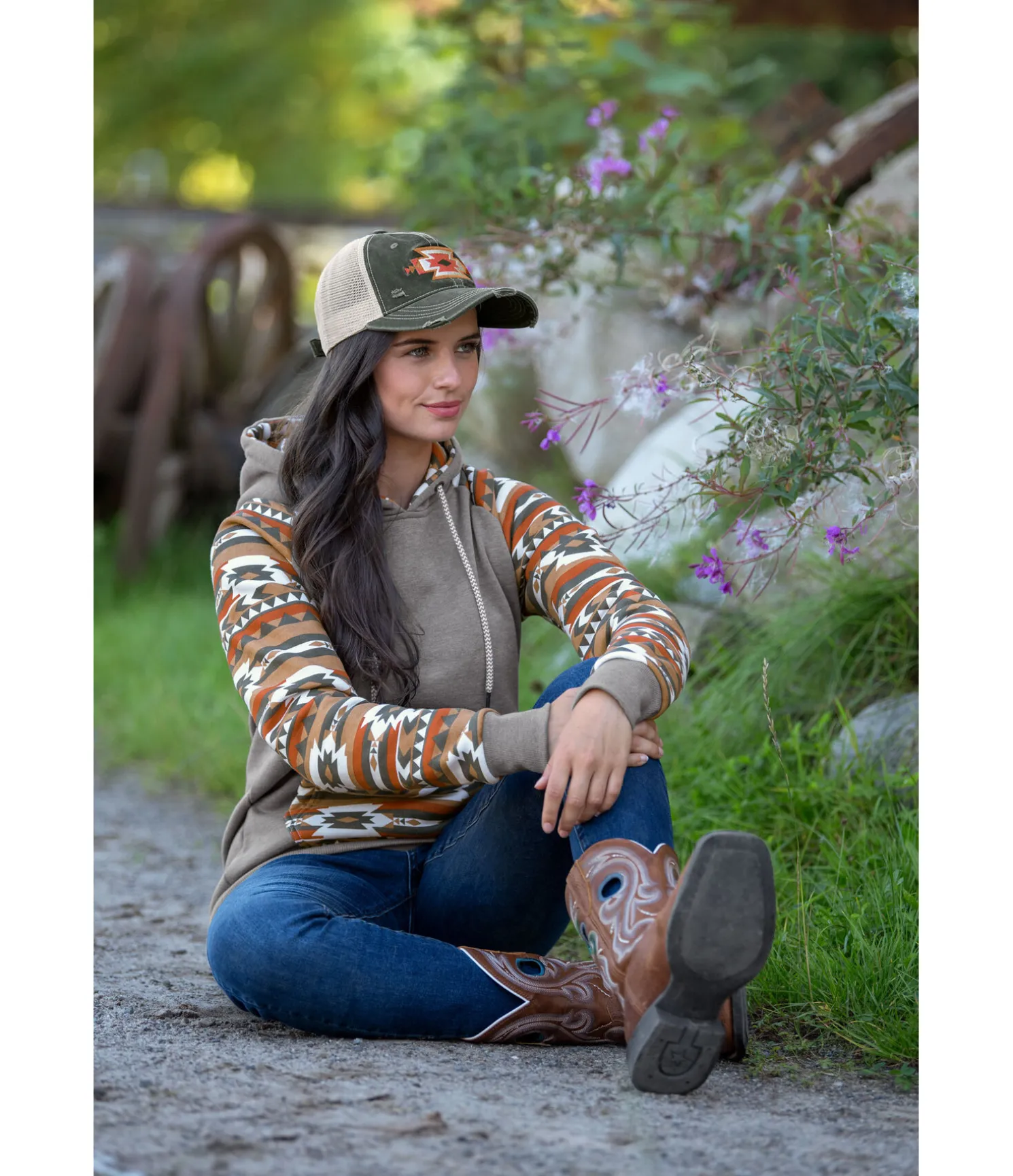 Casquette à l’aspect usé. Motif aztèque brodé. Empiècement en mesh respirant. 70 % polyester, 30 % coton.