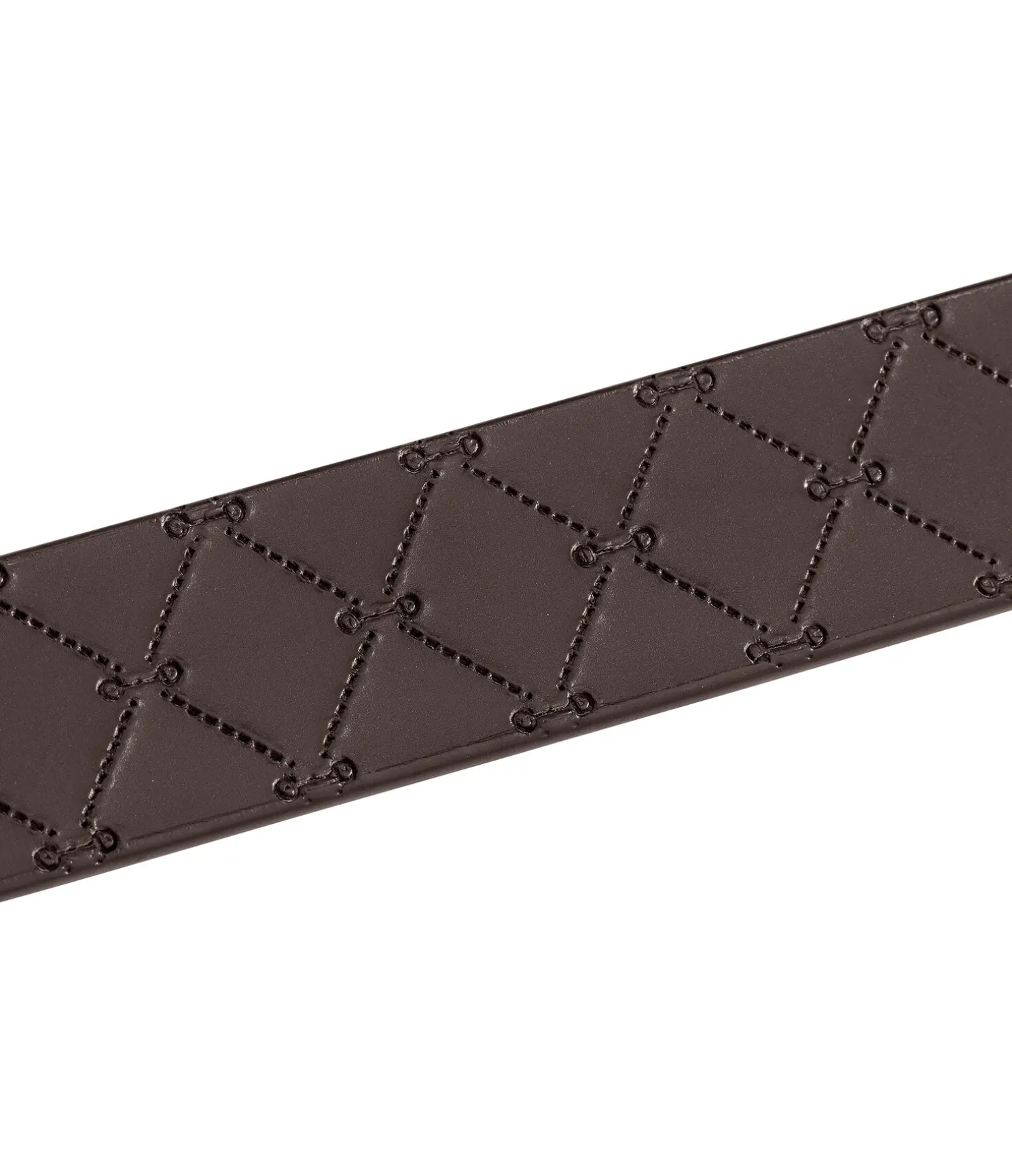 Ceinture élégante en cuir véritable avec gaufrage de petits mors. Disponible en cuir noir avec boucle argentée, en cuir de couleur navy avec boucle rose doré ou en cuir marron avec boucle dorée.