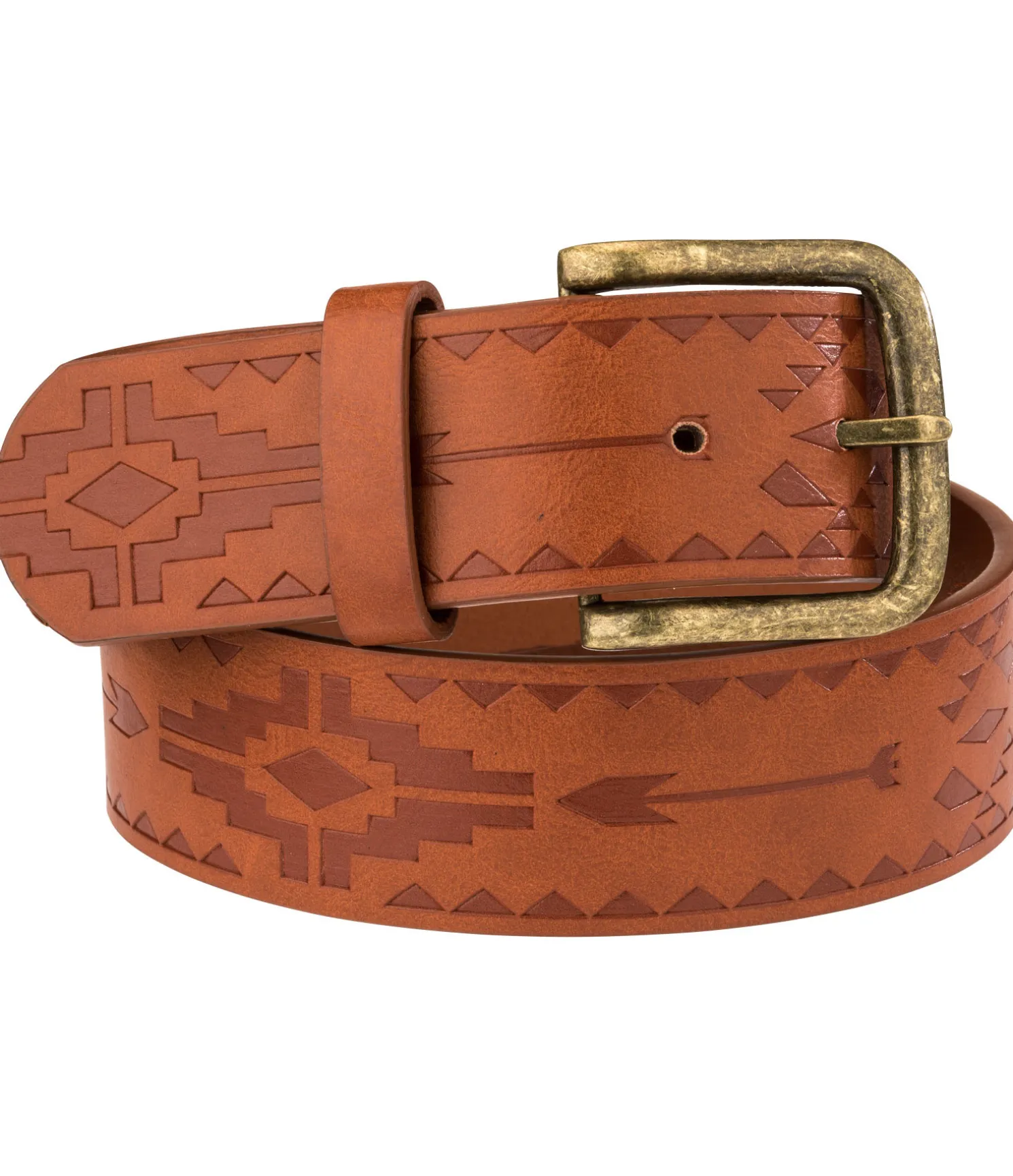 Ceinture chic avec un imprimé aztèque estampé moderne. Boucle interchangeable. Synthétique. Largeur 3,5 cm.