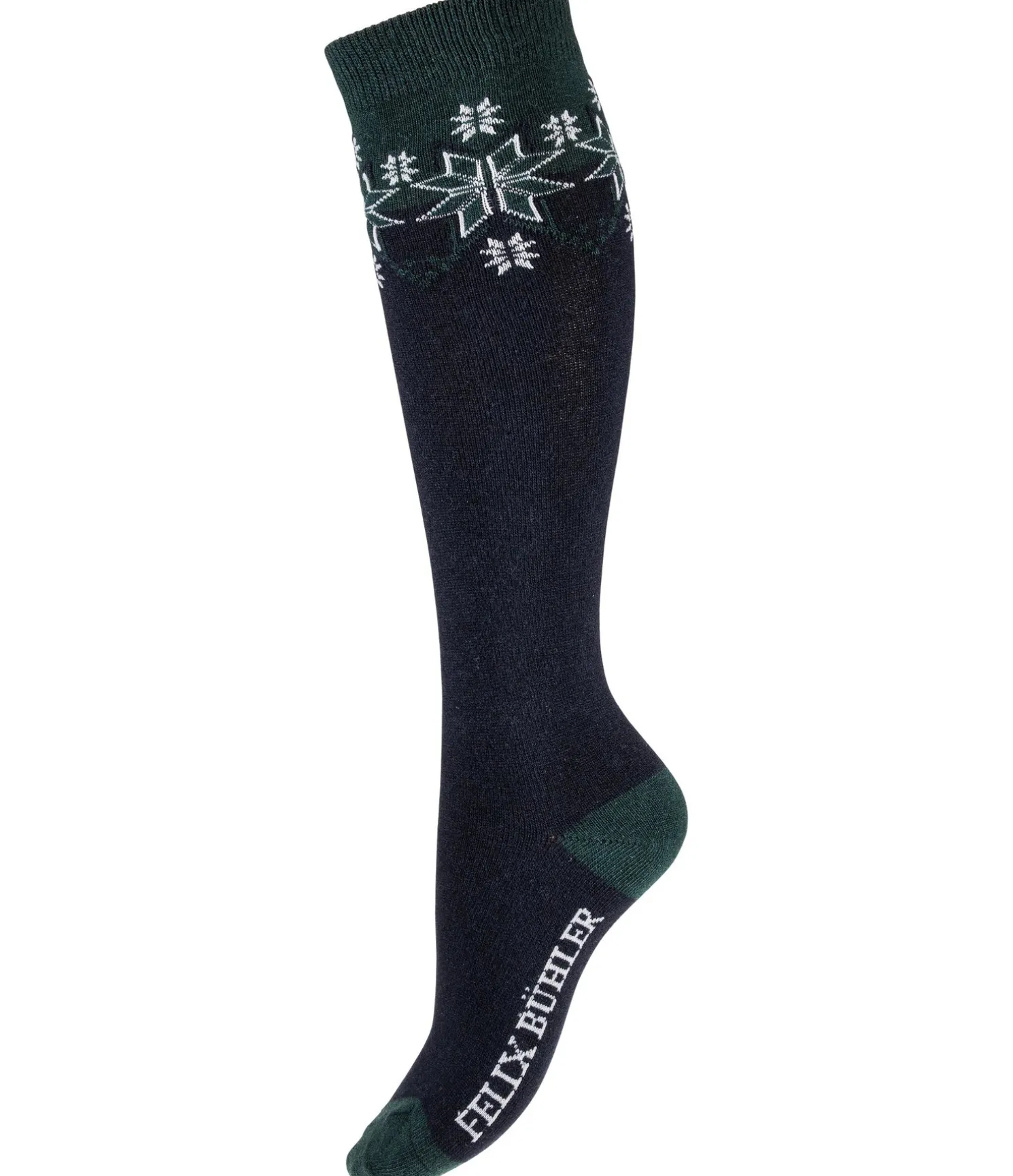 Chaussettes hautes confortables et chaudes en mélange de matières techniques, ornées d’un motif flocon de neige. De par leur haute teneur en laine mérinos, elles sont respirantes et évitent les odeurs persistantes. 28 % laine, 47 % polyacrylique, 14 % polyester, 10 % viscose, 1 % élasthanne. Tailles: 1 (35 – 38) ou 2 (39 – 42).