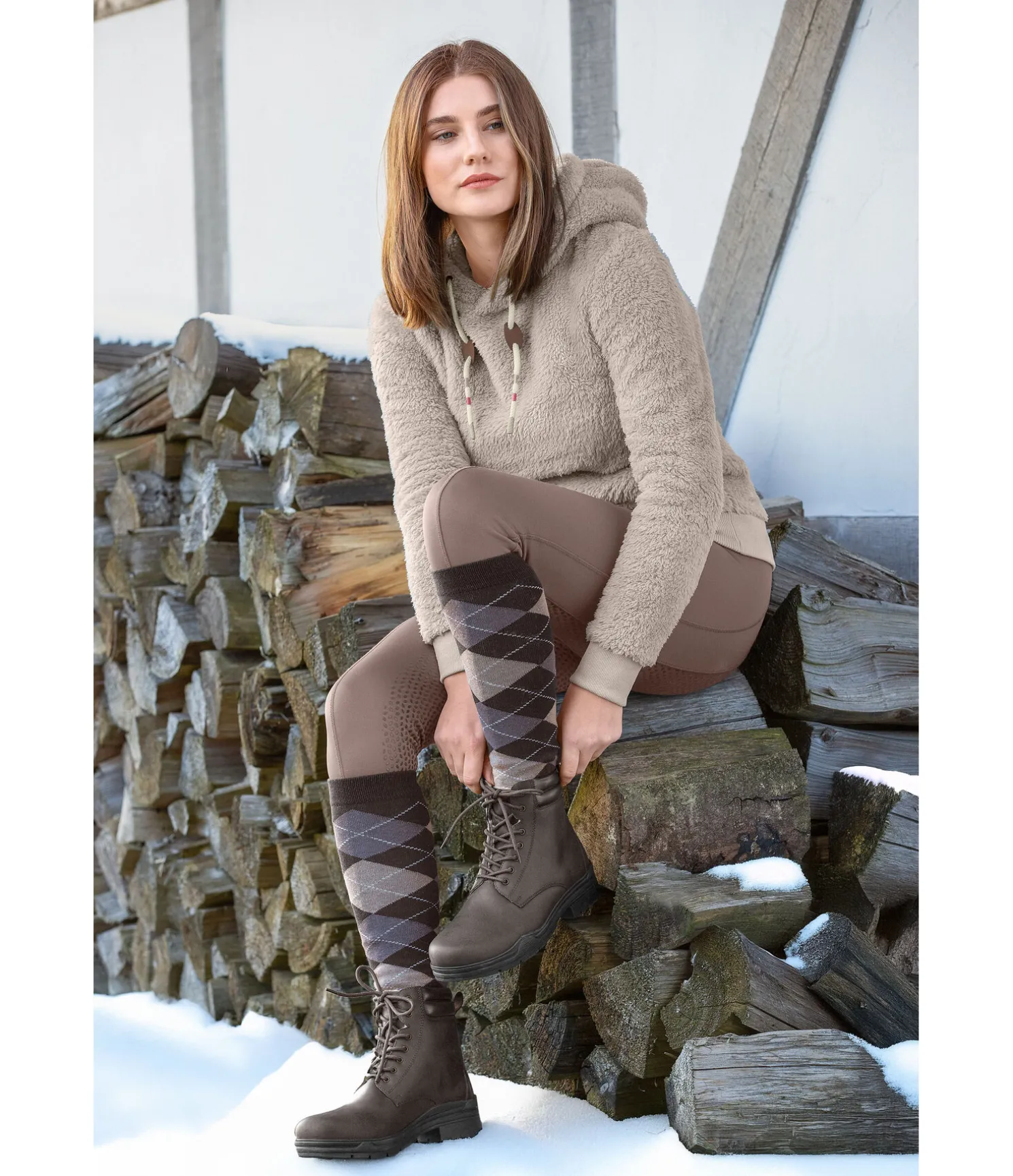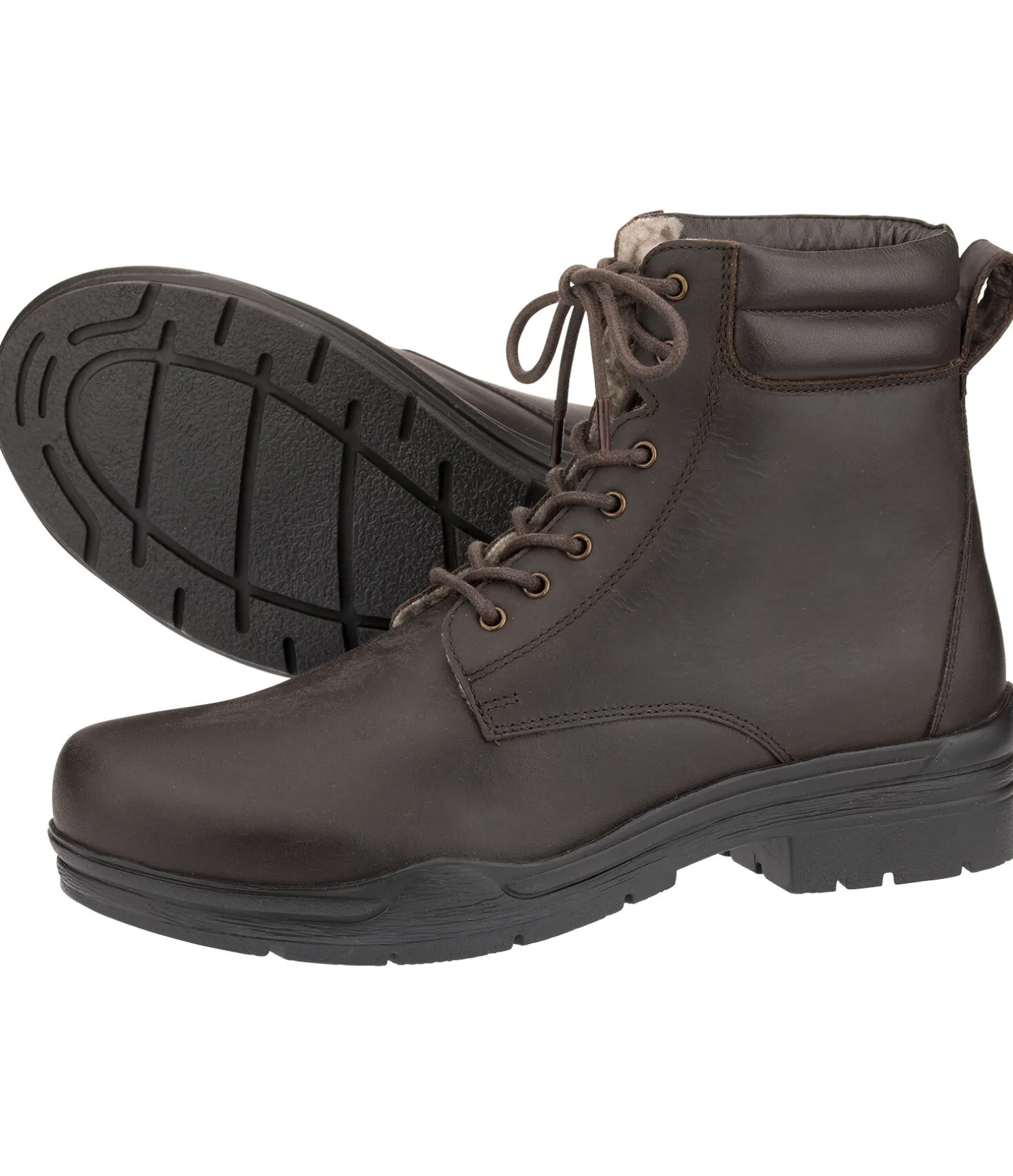 Chaussures d’écurie d’hiver robustes en cuir gras résistant à l’usure. Doublure en polaire Teddy chaude (100 % polyester). Le rembourrage doux à la malléole assure un grand confort. La semelle crantée avec talon cavalier, fabriquée en caoutchouc antidérapant, offre un maintien parfait sur les sols glissants et dans les étriers.