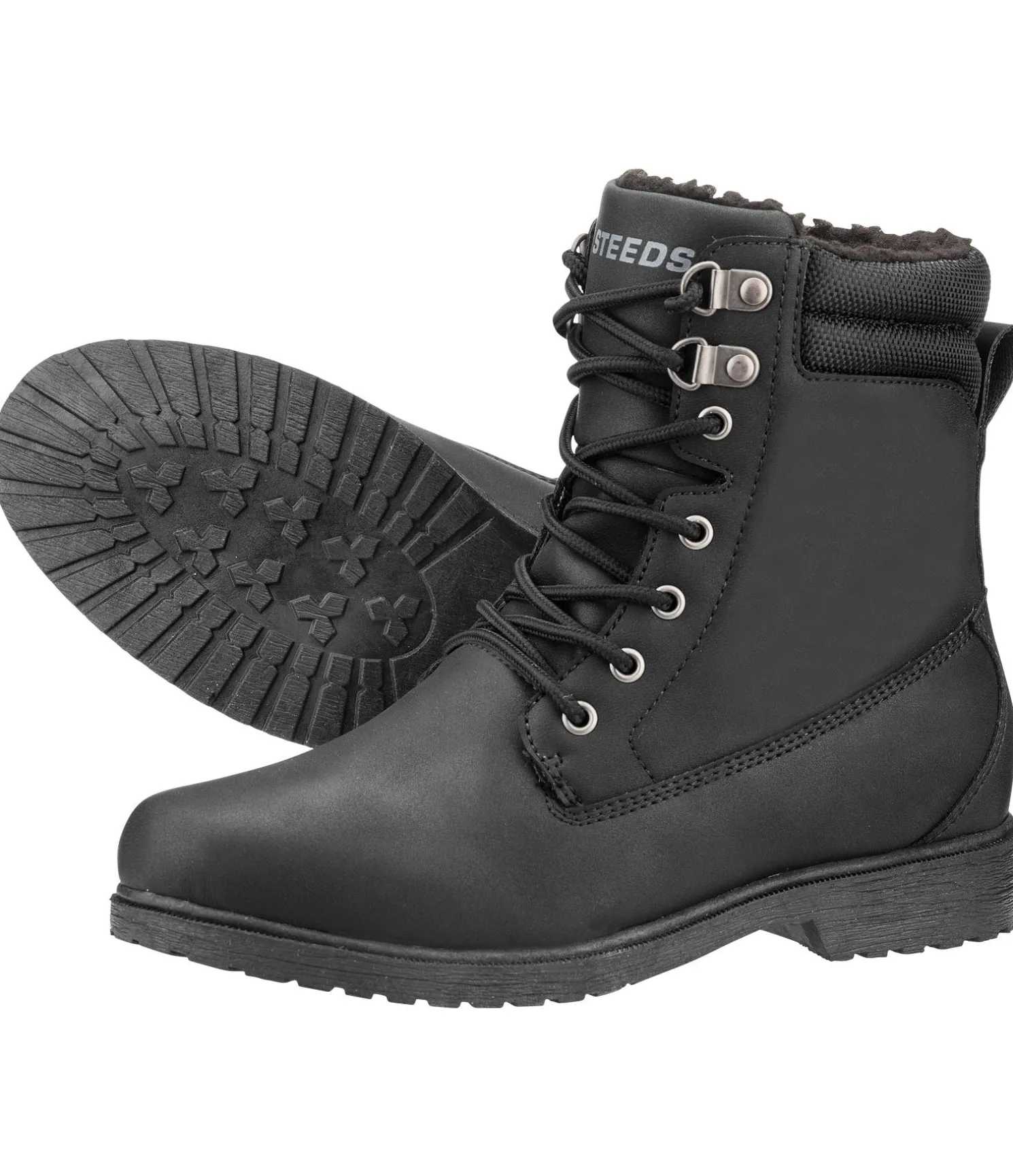 Chaussures d’hiver avec dessus résistant (PU). Doublure chaude en polaire Teddy (100 % polyester). Semelle en caoutchouc. Autres détails : laçage rapide, rembourrage à la cheville, languette cousue sur le côté pour éviter l’infiltration de la neige.