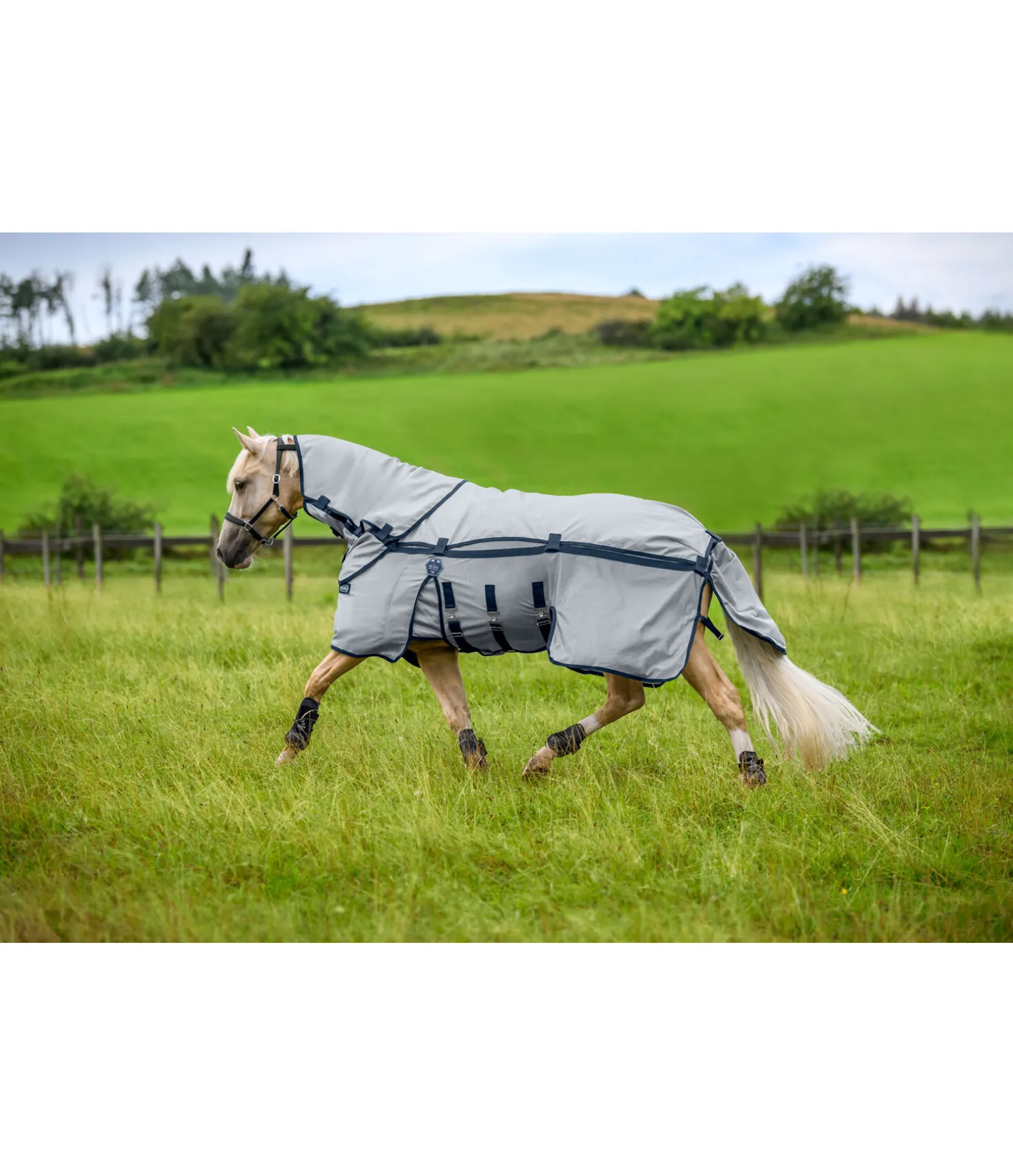 La chemise anti-mouches est conçue dans une matière fine en maille serrée empêchant même les plus petits insectes de passer et bloquant efficacement au moins 70 % des rayons UV. En ajoutant l’empiècement imperméable, la protection UV est encore meilleure pour le dos du cheval (jusqu’à 90 % des rayons UV sont bloqués). Avec couvre-cou amovible doté d’une patte auto-agrippante élastiquée pour la fixation au licol. Fermeture de poitrail équilibrée en deux points avec 2 mousquetons. Rabat ventral réglable avec trois sangles réglables à crochet en T et large rabat de queue. Coupe longue au niveau des membres pour une protection maximale contre les insectes. Plis d’aisance aux épaules pour une liberté de mouvement optimale. Courroie de queue réglable. Doublure lisse protégeant la robe au niveau des épaules et de la crinière pour éviter la casse des crins. 100 % polyester.