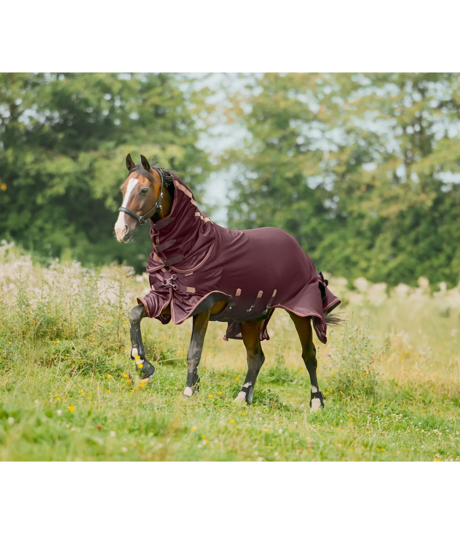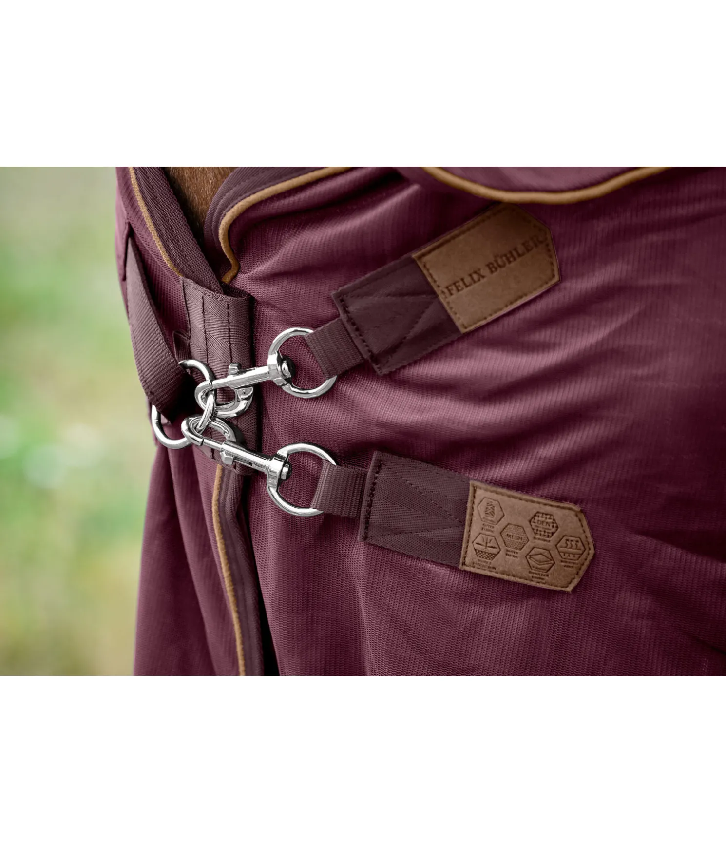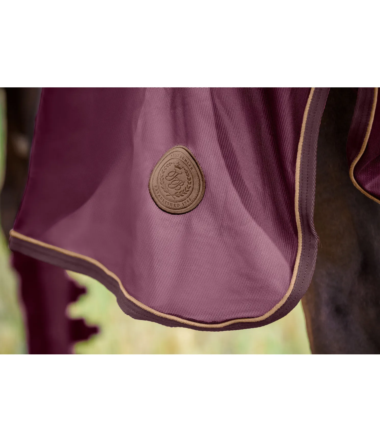 Élégante chemise anti-mouches dans une coupe Fullneck en matière à mailles légère et respirante, ornée d’un badge en synthétique avec logo embossé. Couvre-cou amovible grâce aux pattes auto-agrippantes. Doublure intérieure satinée avec motif à carreaux au niveau des épaules et de la crinière, pour éviter la casse de crins et maintenir la robe brillante. Rabat ventral avec sursangles réglables amovibles, généreux rabat de queue et courroie de queue. Coupe extra longue à l’avant et à l’arrière pour une protection idéale. Fermeture de poitrail pratique équilibrée en plusieurs points avec 2 mousquetons. 100 % polyester.