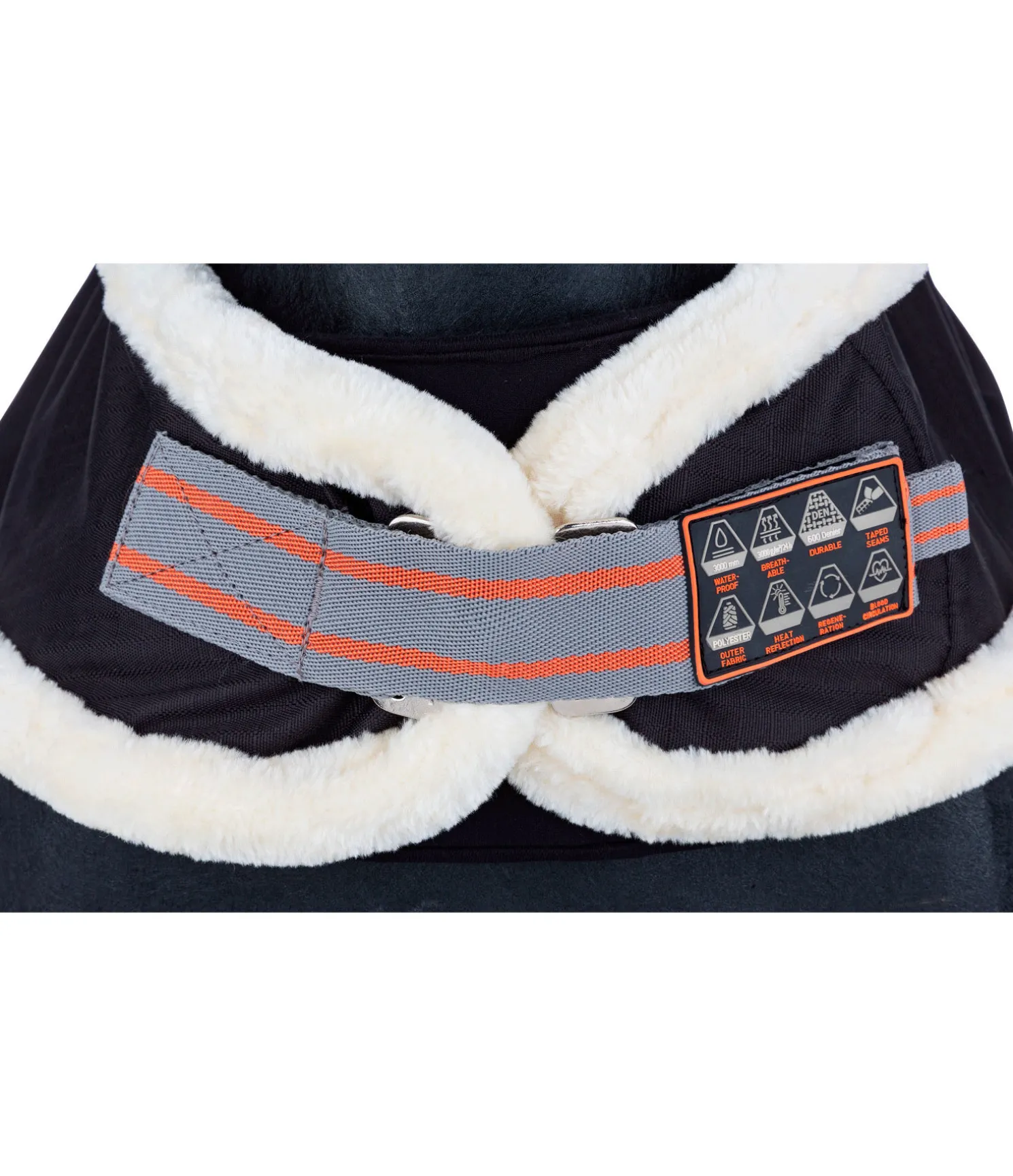 Chemise de marcheur thérapeutique, coupe-vent et imperméable (résistance 600 deniers, imperméabilité 3 000 mm, respirabilité 3 000 g/m2/24h) avec fibres de céramique intégrées dans la doublure en polaire qui refléchissent la chaleur corporelle et améliorent la circulation sanguine. Favorise la relaxation et la récupération. Liberté de mouvement optimale grâce à l’ouverture au niveau du poitrail. Avec doublure en polaire Teddy protectrice au niveau des épaules et du poitrail et fermeture de poitrail avec doublure en caoutchouc chloroprène. Sursangles croisées et courroie de queue. Nous déconseillons l’utilisation d’articles contenant des fibres de céramique sur des animaux en gestation. 100 % polyester, doublure avec particules de céramique fondues.