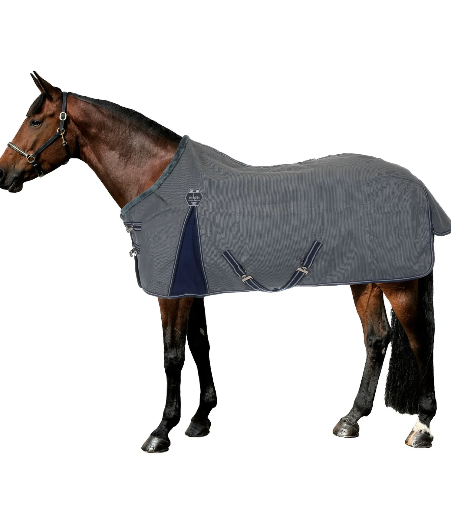 Chemise d’écurie polyvalente en tissu Mesh à base de PVC particulièrement résistant et empêchant la poussière de rester accrochée. Fonction séchante et doublure intérieure absorbant l’humidité. Idéale en tant que chemise d’écurie, séchante ou de transport. Plis d’aisance en polaire extensibles pour une liberté de mouvement optimale. Pad de garrot moelleux en polaire Teddy. Double fermeture de poitrail réglable avec mousquetons et patte auto-agrippante supplémentaire pour un maintien sûr. Sursangles croisées, courroie de queue réglable et rabat de queue. Extérieur en mesh : 100 % PVC, doublure polaire 100 % polyester.