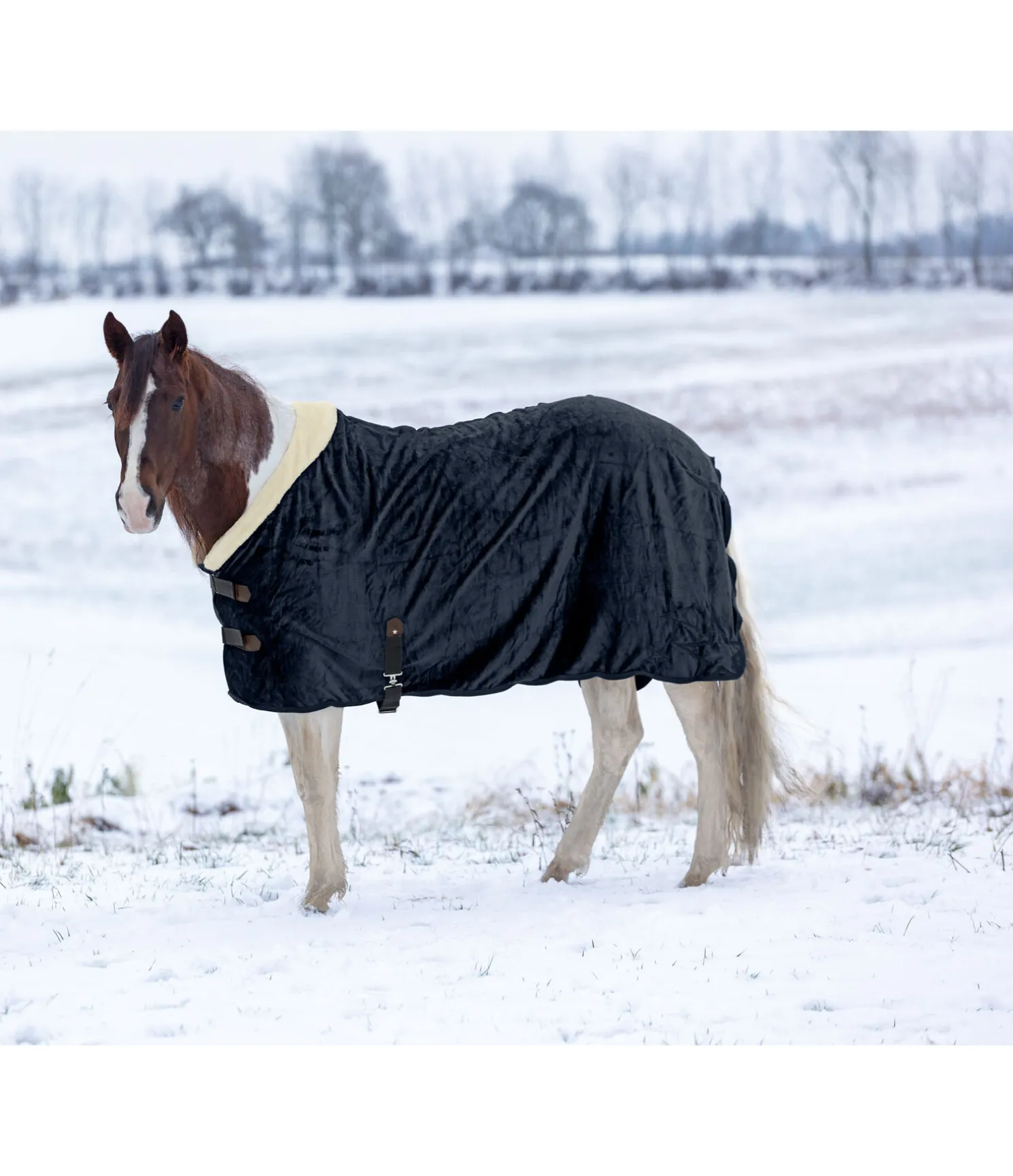 Chemise polaire douce. Matière respirante. Large encolure en polaire Teddy. Fermeture par patte auto-agrippante au niveau du poitrail . Sangle ventrale. Broderie étoilée sur le flanc. 100 % polyester.