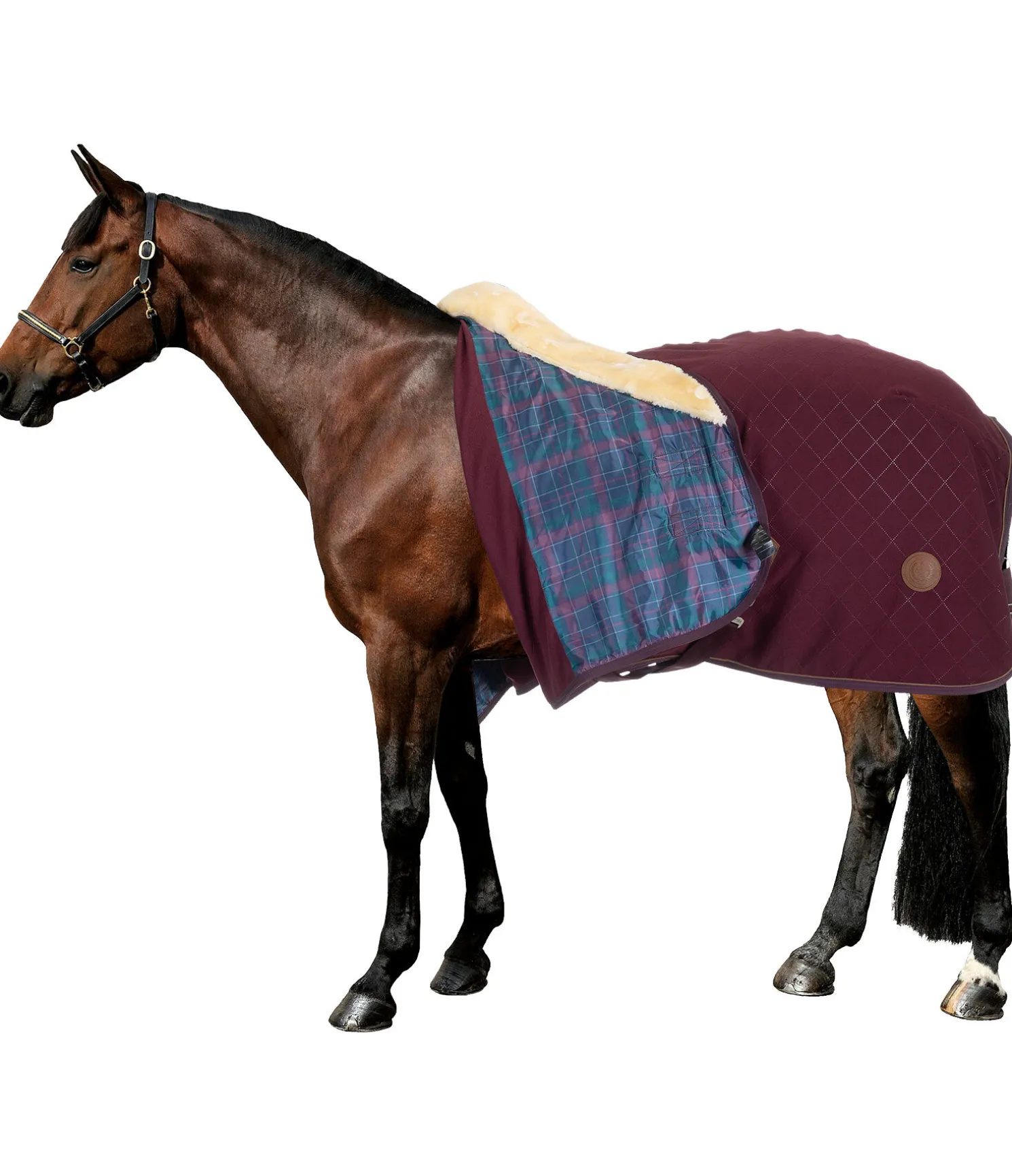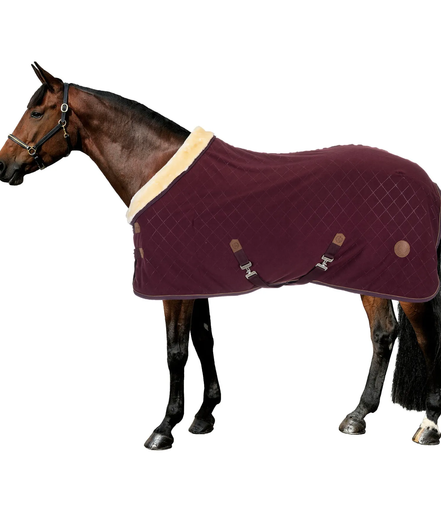 Jolie chemise séchante avec col en polaire Teddy douce. Doublure lisse avec matelassage à losanges pour protéger la robe. Passepoil en synthétique et badge avec logo embossé. Double fermeture de poitrail avec crochets en T. Sursangles croisées réglables et courroie de queue. 100 % polyester.