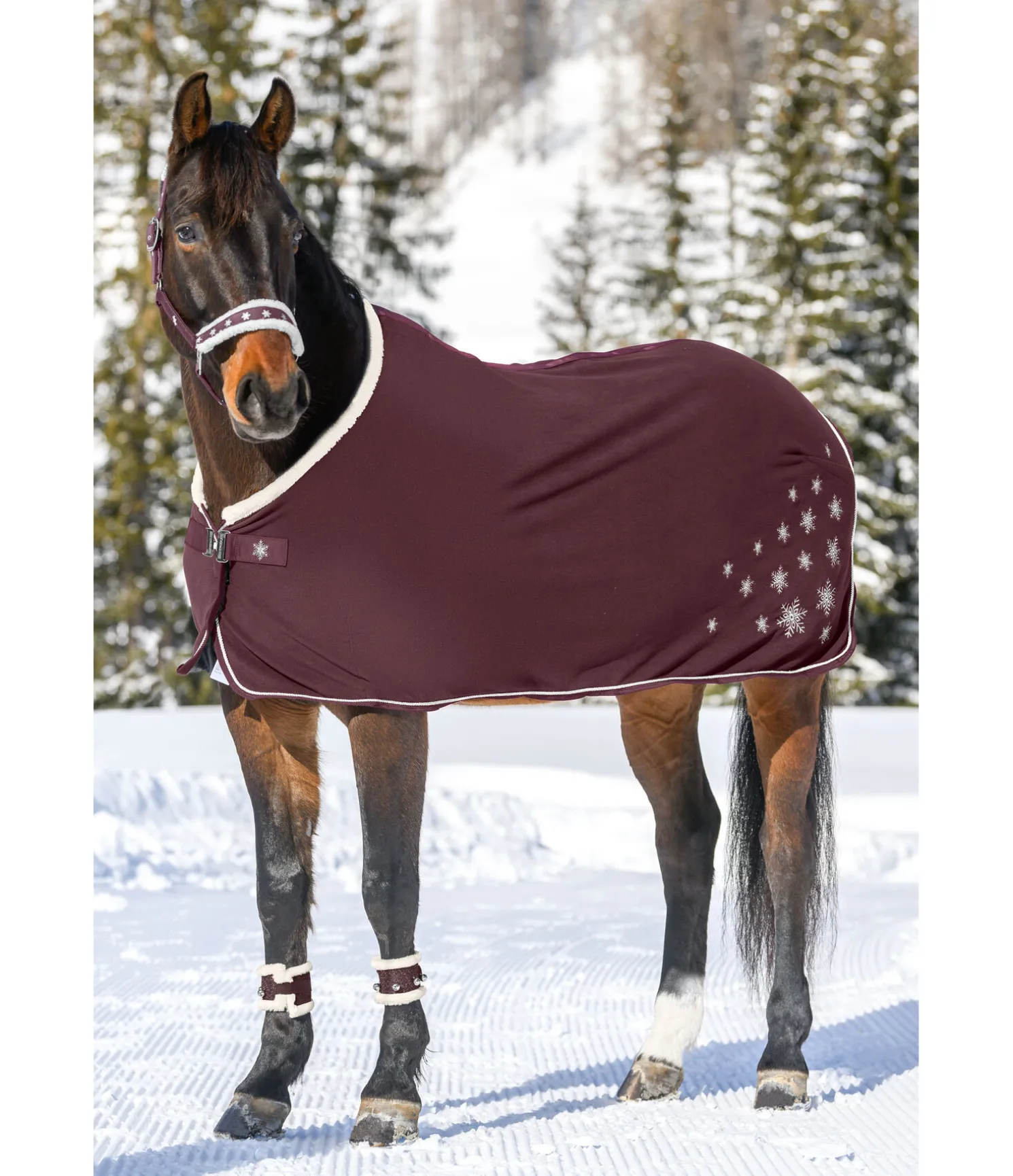 Chemise séchante de Noël. Col doux en polaire Teddy. Flocons de neige brodés à l’arrière. Fermeture de poitrail en T orné d’un flocon de neige. 100 % polyester.