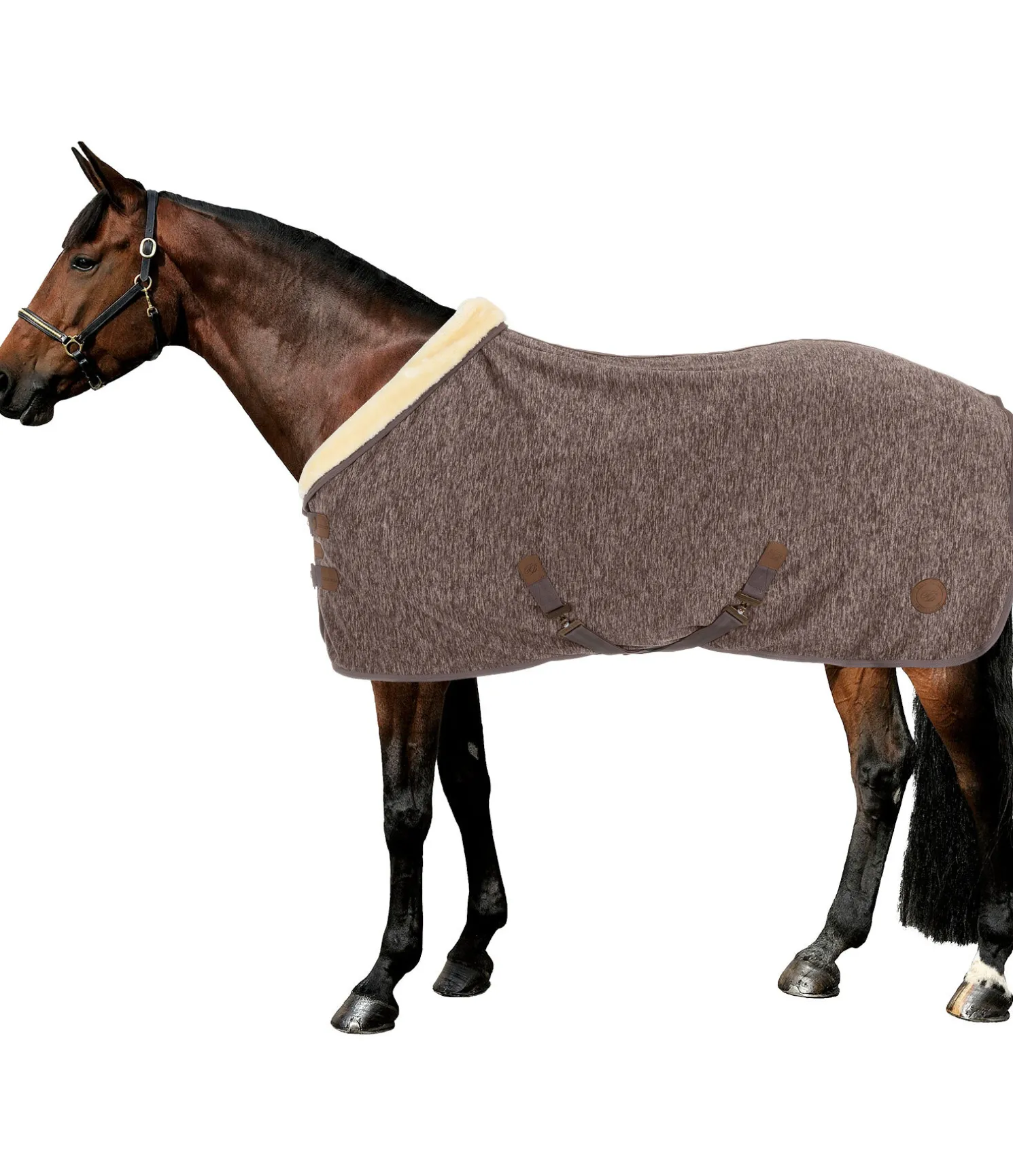 Chemise séchante en tricot polaire chiné avec col en polaire Teddy douce. Assortie à la collection Felix Bühler Knitted. Garde le cheval bien au chaud avant et après le travail et favorise l’évacuation de la transpiration et de l’humidité. Logo en velours synthétique embossé. Double fermeture de poitrail avec crochets en T et patte auto-agrippante supplémentaire, doublure intérieure lisse protégeant la robe au niveau des épaules. Équipée de sursangles croisées et d’une courroie de queue réglables. 100 % polyester.