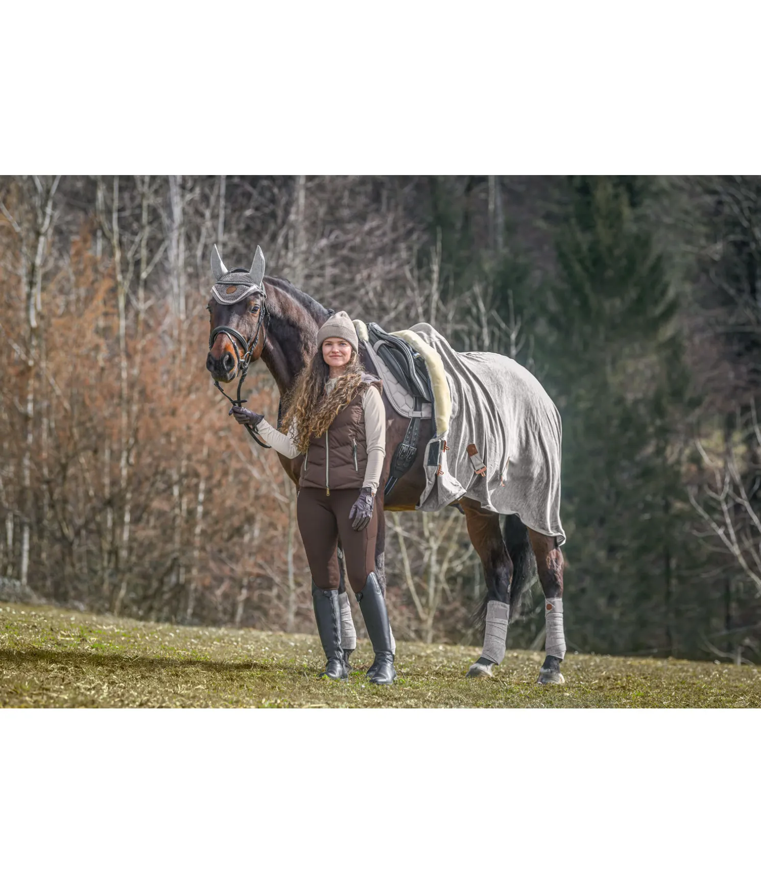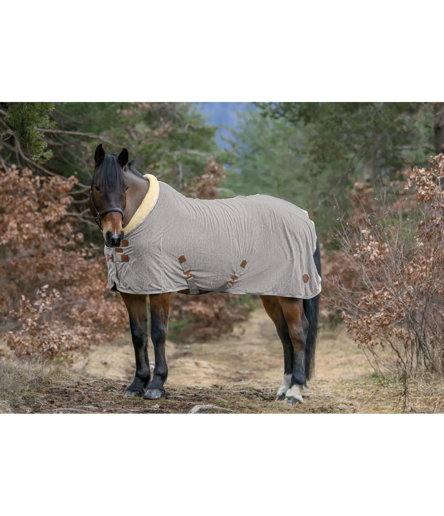 Chemise séchante en tricot polaire chiné avec col en polaire Teddy douce. Assortie à la collection Felix Bühler Knitted. Garde le cheval bien au chaud avant et après le travail et favorise l’évacuation de la transpiration et de l’humidité. Logo en velours synthétique embossé. Double fermeture de poitrail avec crochets en T et patte auto-agrippante supplémentaire, doublure intérieure lisse protégeant la robe au niveau des épaules. Équipée de sursangles croisées et d’une courroie de queue réglables. 100 % polyester.