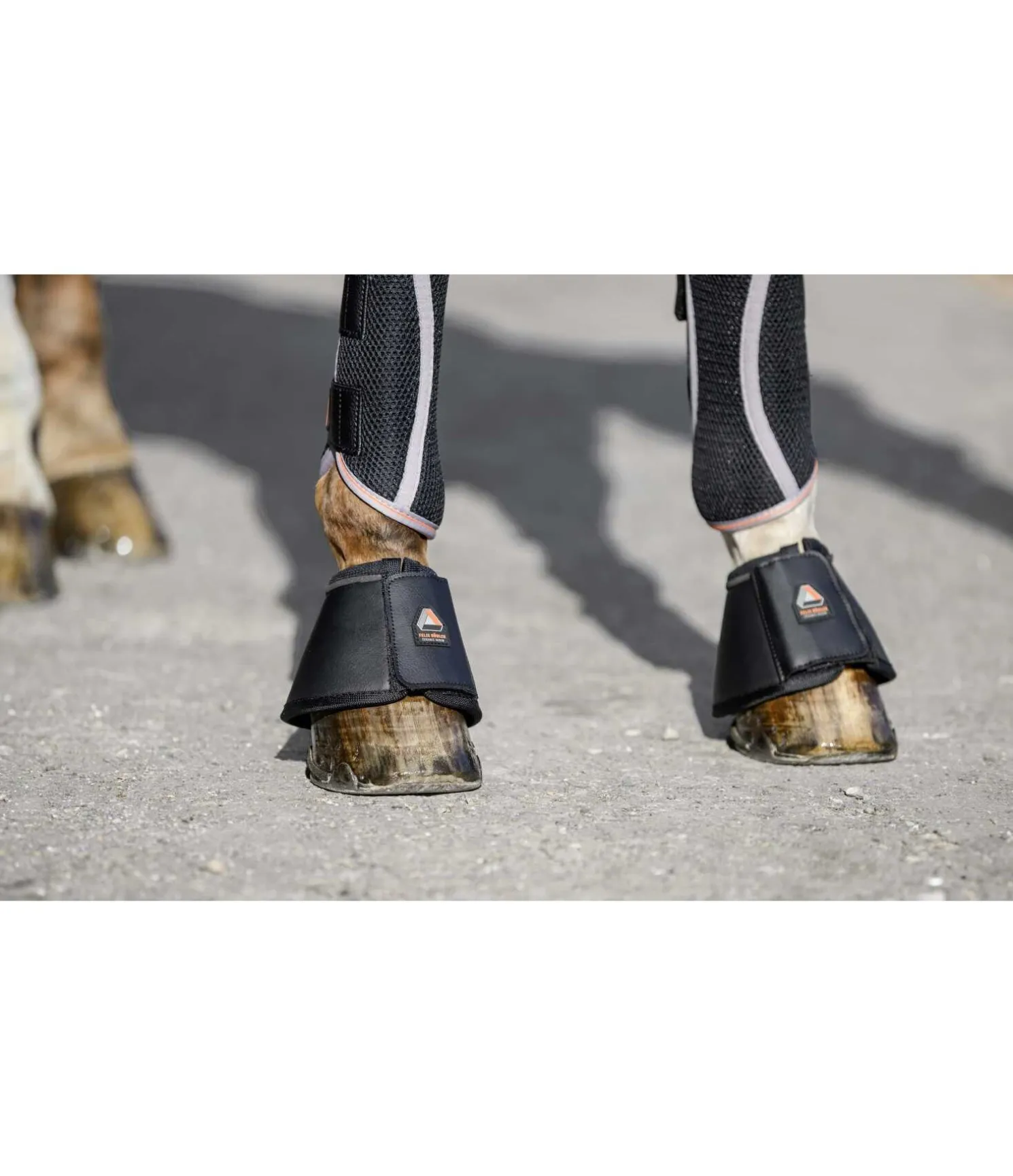 Cloches extrêmement robustes en cuir synthétique lavable et résistant à la saleté. Doublure intérieure respirante avec fibres de céramique. La bordure au niveau de la couronne est également composée en Air mesh avec fibres de céramique. Cela peut avoir un effet positif sur la circulation sanguine et soutenir, par exemple, les maladies chroniques telles que le syndrome naviculaire ou l’arthrose de l’articulation du sabot. Le produit peut également être utilisé pendant la phase de régénération en cas d’inflammation de l’articulation du sabot. La large patte auto-agrippante assure un maintien sûr. Le revêtement en polypropylène réduit en outre l’usure prématurée du produit. 100 % polyester.