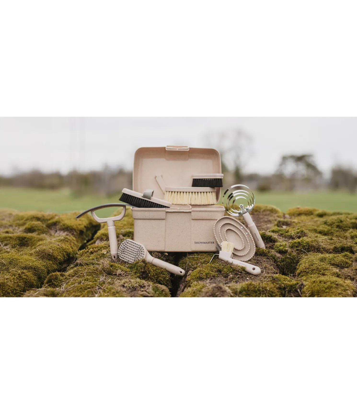 Coffre de pansage pratique en matière durable. Composé à 45 % de plastique recyclé et à 55 % de fibres de paille et de riz. Casier amovible pour les petits ustensiles. 28,5 x 21 x 20 cm.