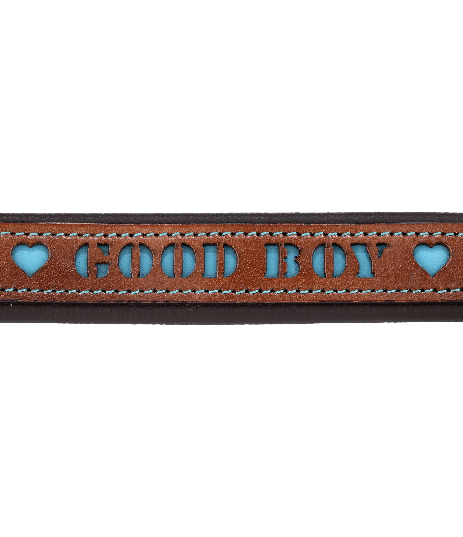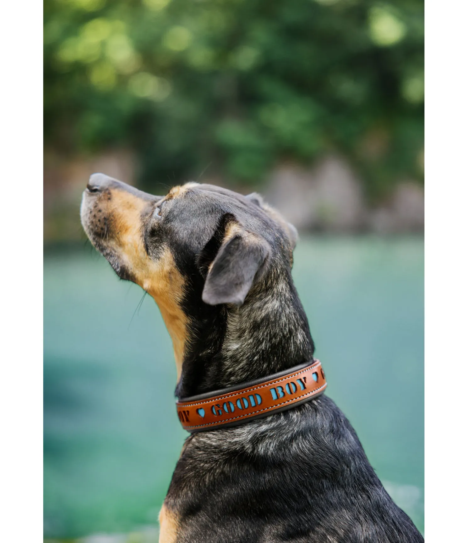 La doublure douce de ce collier entièrement en cuir véritable assure un confort optimal. Le collier se règle facilement au tour de cou du chien grâce à une boucle à ardillon. La découpe « Good Girl » ou « Good Boy » est mise en valeur par le fond coloré et les coutures assorties. Bouclerie argentée.