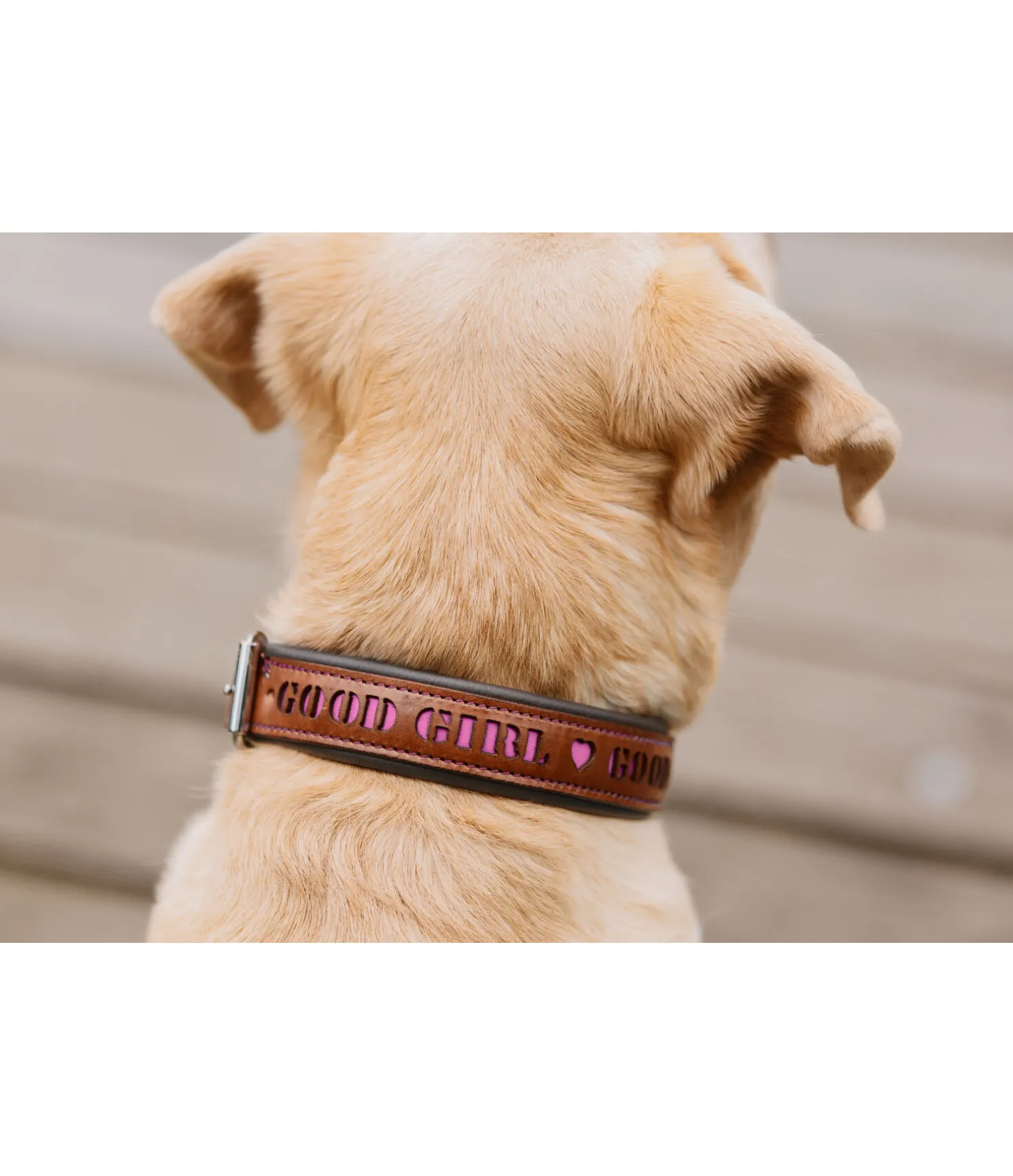 La doublure douce de ce collier entièrement en cuir véritable assure un confort optimal. Le collier se règle facilement au tour de cou du chien grâce à une boucle à ardillon. La découpe « Good Girl » ou « Good Boy » est mise en valeur par le fond coloré et les coutures assorties. Bouclerie argentée.