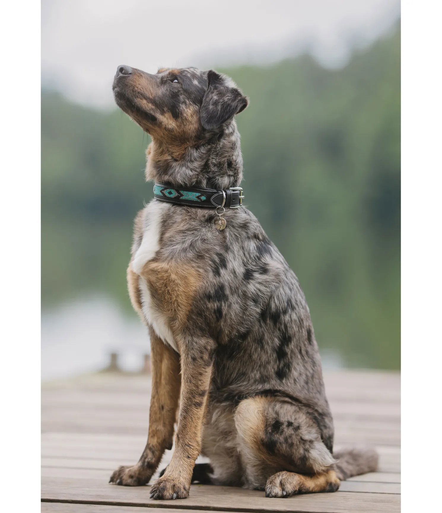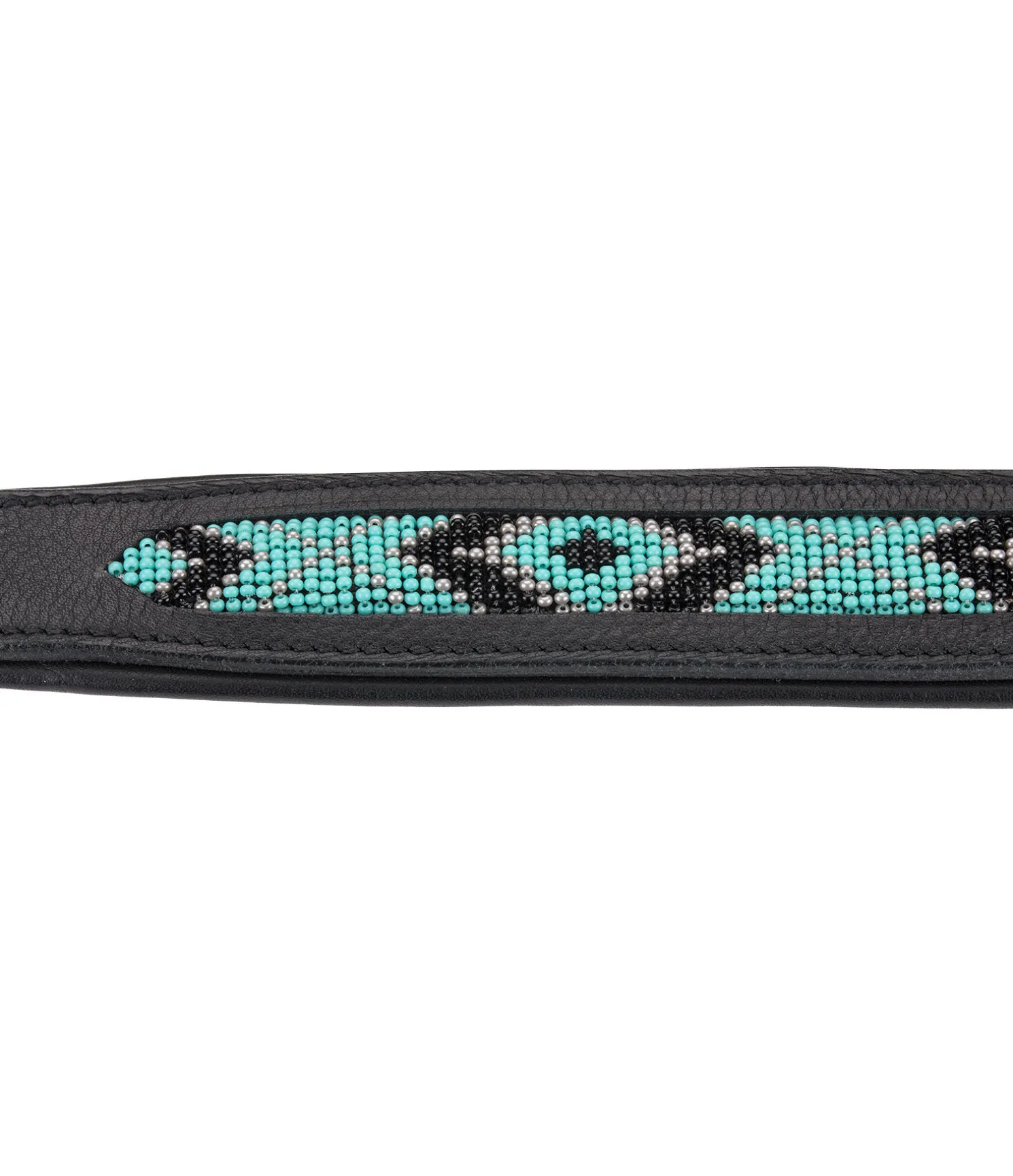 Collier en cuir véritable avec motifs aztèques en perles. Doublure douce pour un confort optimal. Facile à ajuster grâce à la boucle à ardillon. Joli petit médaillon et pendentif plume. Bouclerie argentée.