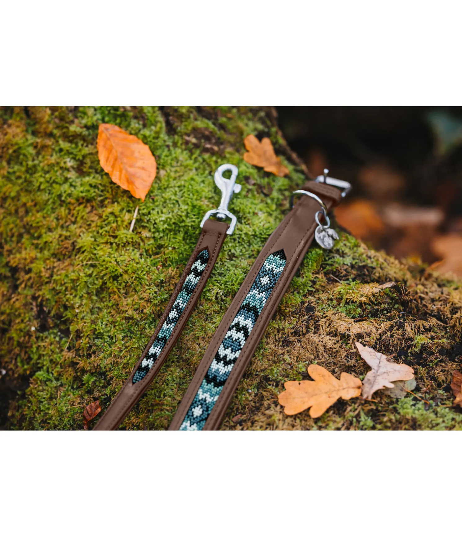 Collier en cuir véritable avec motifs aztèques en perles. Doublure douce pour un confort optimal. Facile à ajuster grâce à la boucle à ardillon. Joli petit médaillon et pendentif plume. Bouclerie argentée.