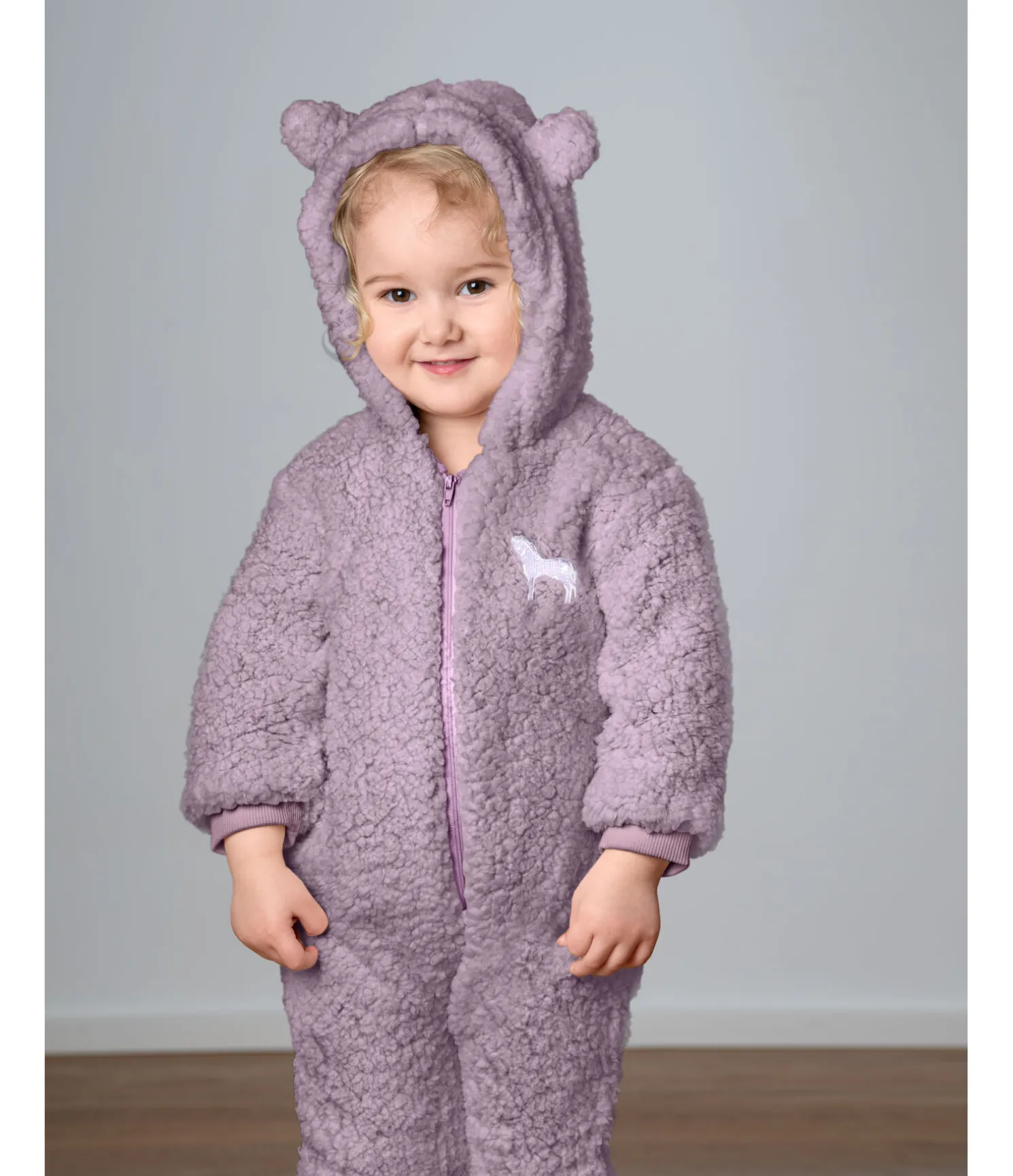Combinaison douce et moelleuse avec capuche en polaire. Sur la capuche se trouvent des petites oreilles en peluche. La longue fermeture à glissière permet un enfilage facile. Finition en bord-côte sur les bas des manches et des jambes. Jolie broderie cheval sur la poitrine. Doublure intérieure avec imprimé all-over. 100 % polyester, doublure 100 % coton. Taille 3 = 62 / 68 ; taille 9 = 74 / 80 ; taille 18 = 86 / 92