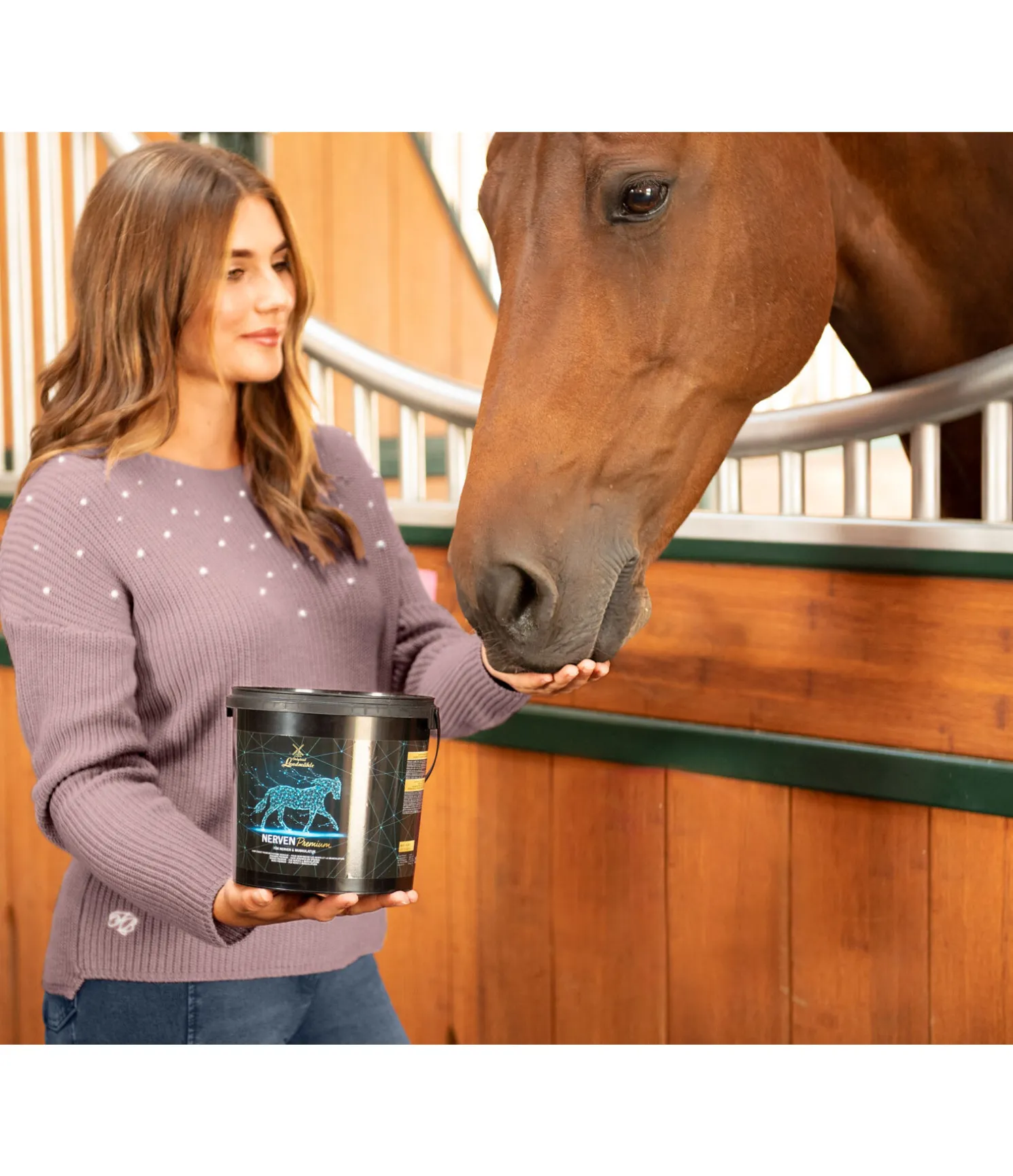Aliment complémentaire premium pour chevaux, riche en fumarate de magnésium organiquement lié et en vitamines. Les chevaux tendus, nerveux et stressés sont souvent un danger non seulement pour eux-mêmes, mais également pour leur cavalier. Les chevaux ayant une carence en magnésium sont souvent maladroits, démotivés et stressés. Le stress est souvent lié au métabolisme musculaire. En effet, les muscles tendus et les douleurs musculaires en sont souvent des conséquences. Cet aliment complémentaire contient beaucoup de magnésium, ce qui permet de soutenir le métabolisme musculaire notamment chez les chevaux nerveux. Cet apport en magnésium peut avoir un effet positif sur le calme et la sérénité du cheval. Les vitamines A, E, B12 et C peuvent contribuer à la relaxation des muscles et avoir des effets positifs sur le métabolisme musculaire. Le produit est donc idéal pour les jeunes chevaux nerveux à l’entraînement ou plus généralement pour les chevaux nerveux, stressés ou ayant tendance à souffrir de tensions musculaires. Exempt de céréales et de mélasse, en granulés faciles à donner aux chevaux et généralement mieux acceptés.