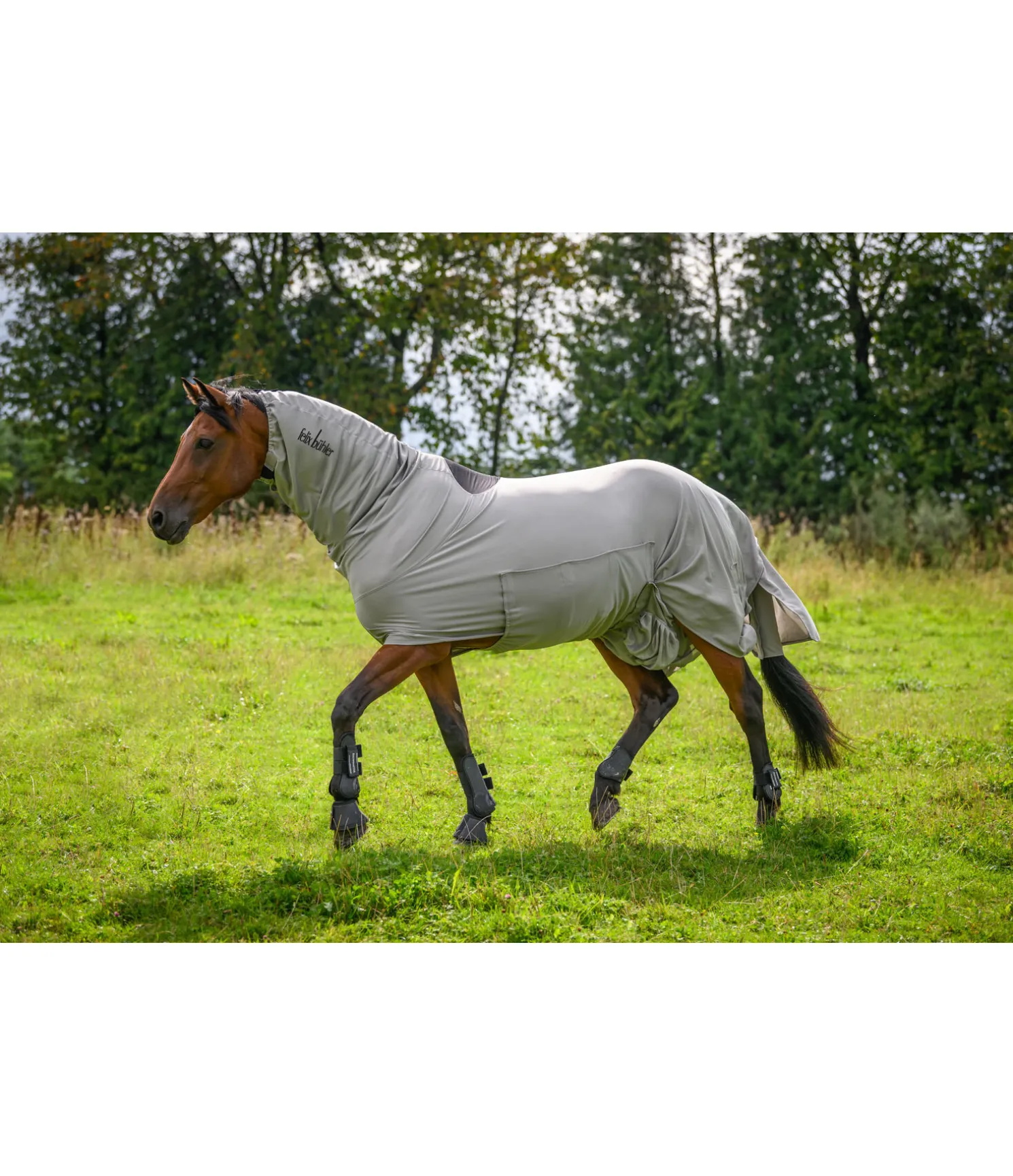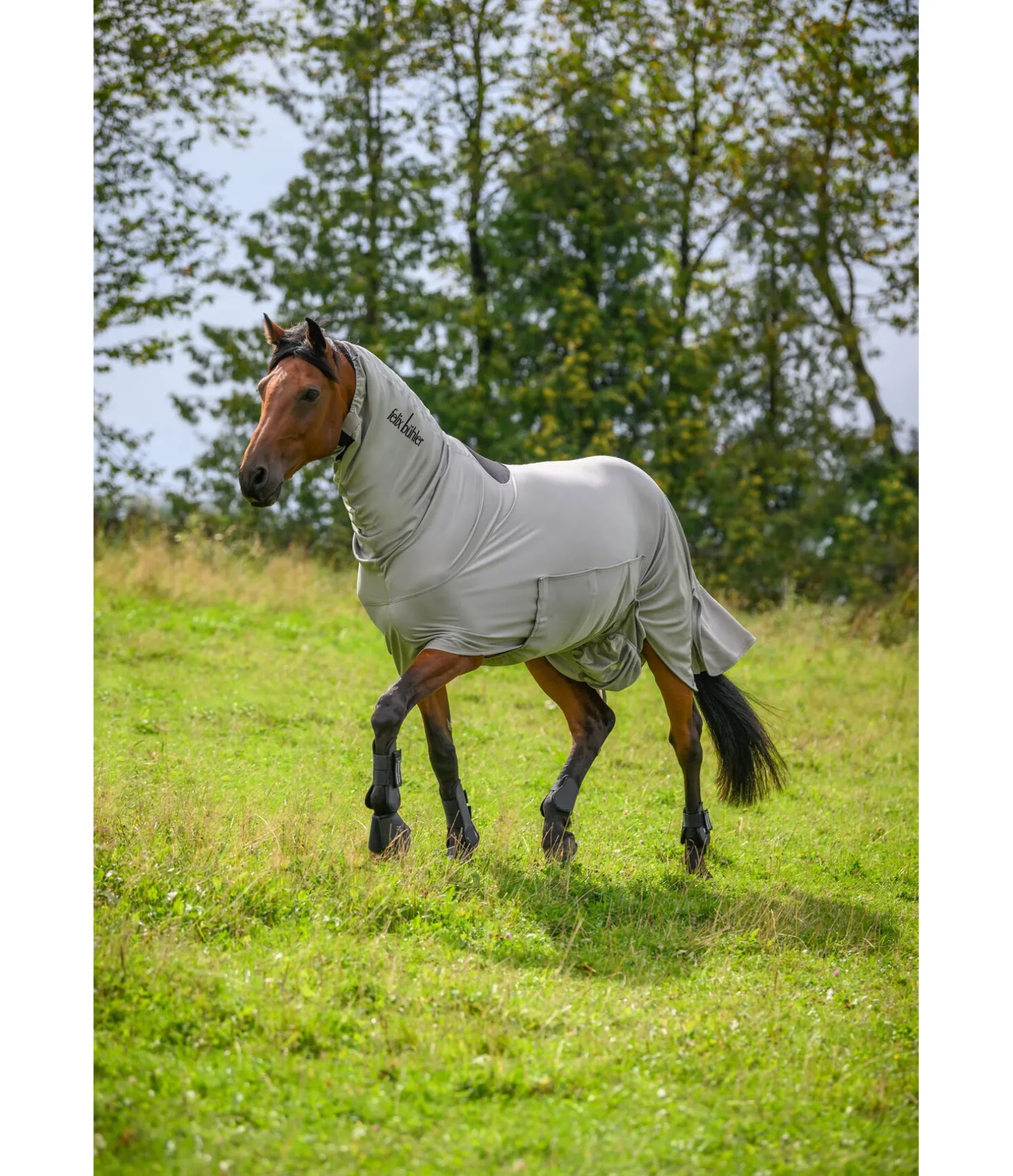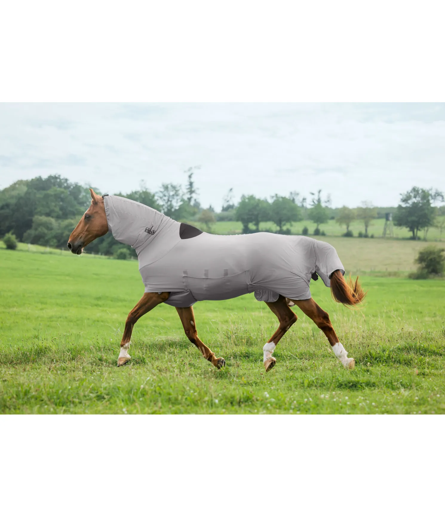 Couverture anti-eczéma innovante et bien ajustée. Tissu technique extensible et respirant bloquant au moins 97 % des rayons UV pour une protection efficace contre le soleil (UPF 50+). Idéale pour les chevaux particulièrement sensibles aux mouches et moustiques. Le couvre-cou et la couverture forment une seule et même pièce afin de ne laisser aucune chance aux insectes. Passant avec patte auto-agrippante sur la partie supérieure de l’encolure pour la fixation au licol. Empiècement léger et particulièrement élastique au garrot pour minimiser les pressions. Offre une protection intégrale grâce au large rabat ventral extensible et au généreux rabat de queue doublé. Pour une bonne protection contre les mouches noires, la couverture dispose d’une protection amovible des parties génitales et des mamelles en tissu en filet respirant qui laisse passer l’urine. 100 % polyester. Notre conseil : pour une protection intégrale, pensez aux masque anti-eczéma Felix Bühler Gibson II (référence 414 242).