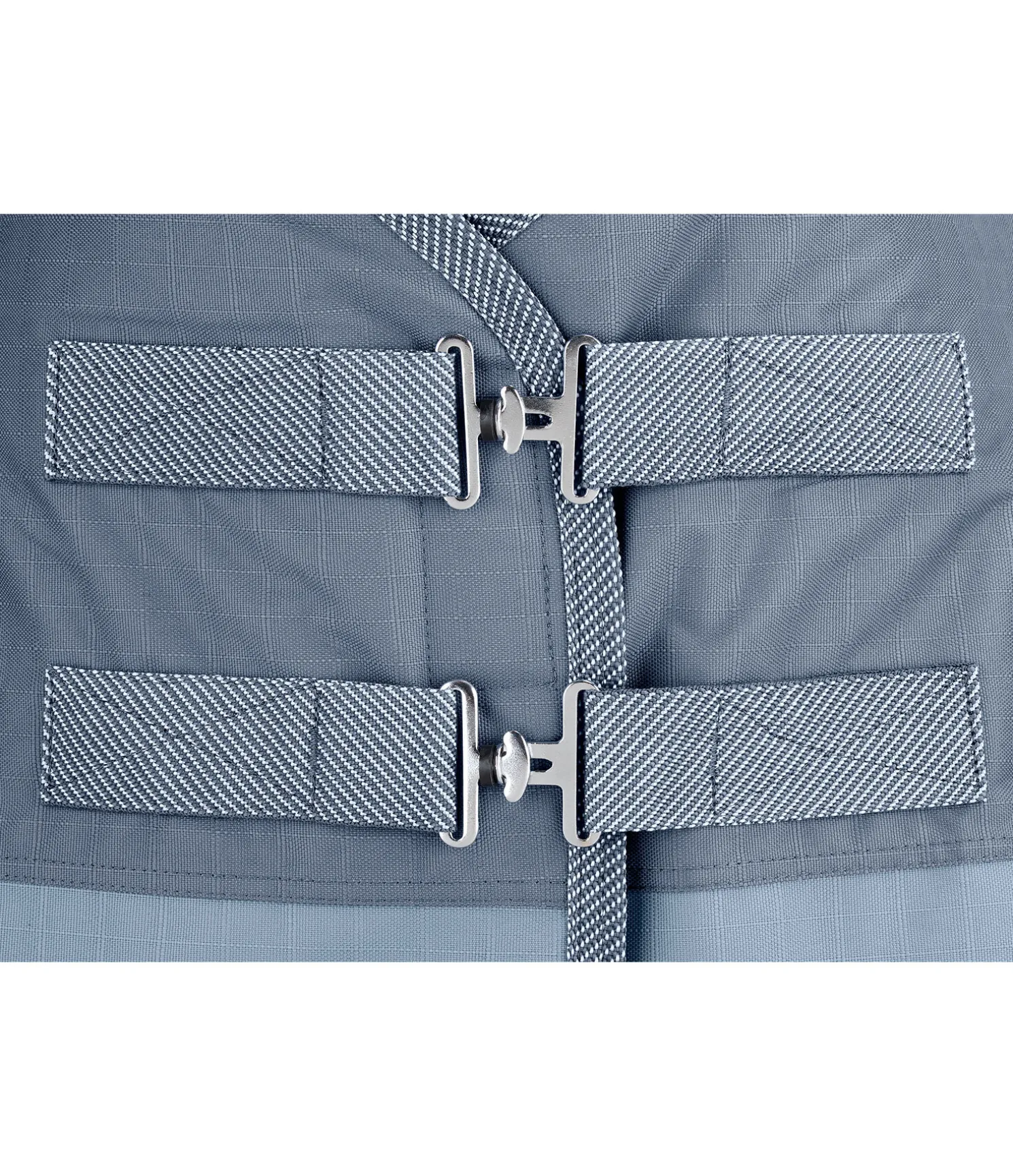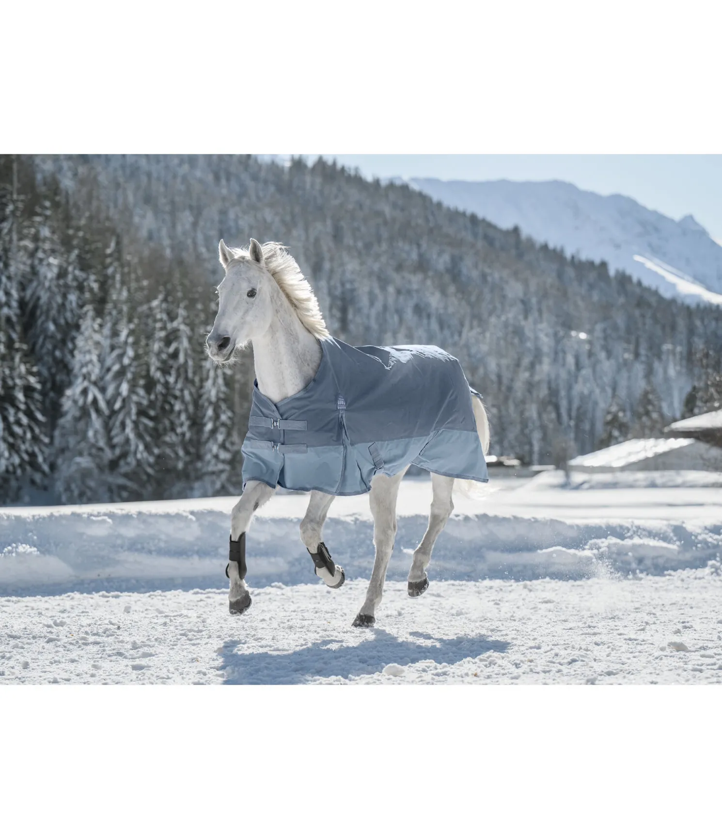 Couverture d’extérieur solide, imperméable (4 000 mm) en matière technique résistante Ripstop 1 000 deniers avec grammage 150 g. Grands plis d’aisance pour une liberté de mouvement optimale. Bandes de couleur assortie le long des flancs. Doublure lisse protégeant la robe. Double fermeture de poitrail avec crochets en T, sursangles croisées et courroie de queue réglable. Anneaux permettant de fixer des courroies de cuisses (non incluses). 100 % polyester.