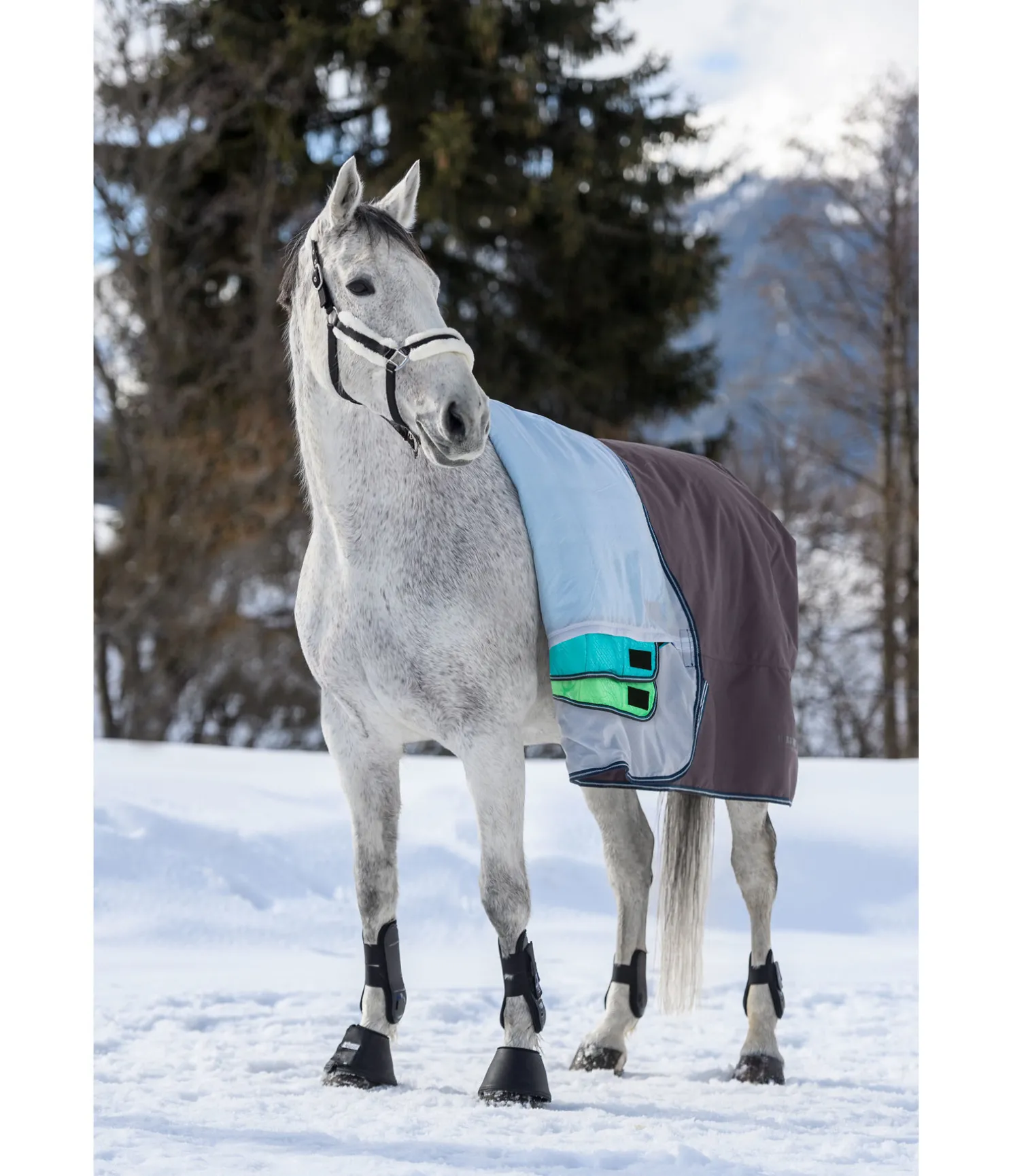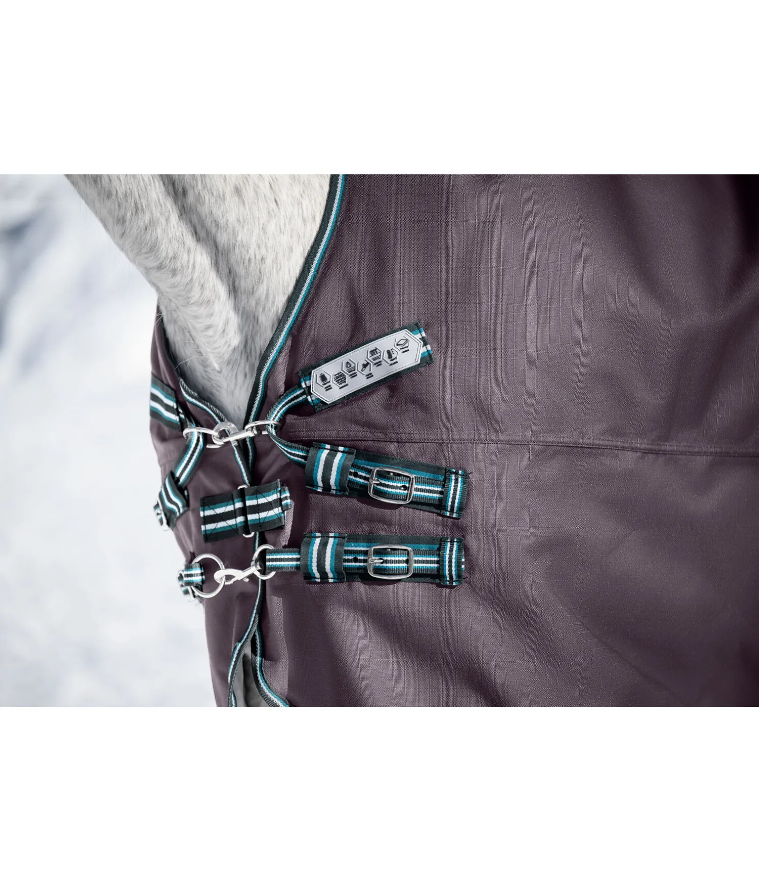 Couverture d’extérieur 4 en 1 avec système de liners innovant, dans une coupe Highneck ! Une couverture – une multitude de possibilités : couverture d’extérieur en matière imperméable (5.000 mm) et particulièrement robuste 1.200 deniers. Livrée avec 2 liners matelassés de 100 g (vert) et 200 g (bleu). La partie imperméable comprend une longue fermeture à glissière dissimulée le long des flancs, qui permet de fixer les différents liners à la couverture avec des pattes auto-agrippantes supplémentaires. Les deux liners peuvent être combinés pour les jours les plus froids afin de former une couverture 300 g. Cette couverture peut ainsi être utilisée en tant que simple chemise imperméable 0 g ou en tant que couverture avec garnissage 100 g, 200 g ou 300 g. Ce système innovant permet d’ajouter des épaisseurs sans embarrasser le cheval avec des fermetures, sursangles ou boucles supplémentaires. Grâce à ce système, cette couverture est également plus pratique et moins encombrante que les couvertures avec liners classiques. La partie extérieure est équipée d’une fermeture de poitrail équilibrée en plusieurs points réglable des deux côtés, avec mousquetons, anneaux et patte auto-agrippante supplémentaire. Rembourrage au niveau de l’encolure pour un confort optimal. Doublure lisse protégeant la robe pour éviter les irritations dues aux frottements. Sursangles croisées réglables, rabat de queue et courroie de queue. Anneaux permettant de fixer des courroies de cuisses (non incluses). 100 % polyester. En raison de ses propriétés innovantes, ce produit est protégé par un modéle d’utilité.