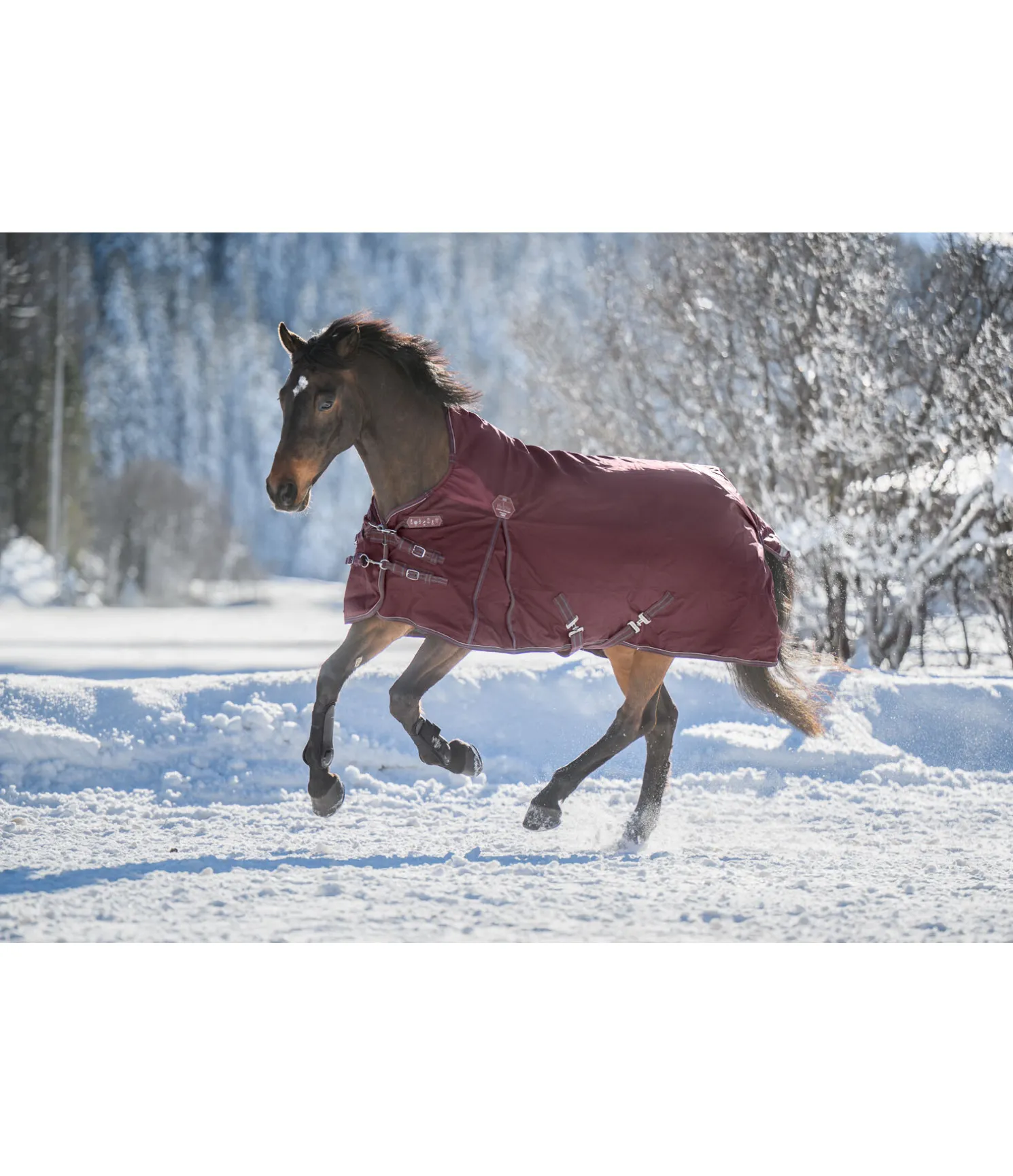 Notre best-seller ! La matière extérieure offre désormais une plus grande résistance à la déchirure et une meilleure imperméabilité pour garantir une longévité optimale avec le même confort qu’auparavant ! Couverture d’extérieur fonctionnelle dans une coupe Highneck. Matière en nylon 1 680 deniers particulièrement résistante. Grande imperméabilité (5.000 mm). Comparé au polyester, le nylon est nettement plus doux et soyeux, avec des reflets satinés. Il est également plus extensible que le polyester pour une meilleure résistance à la déchirure. Garnissage de 200 g. Inserts extensibles déperlants en softshell au niveau des épaules et de l’encolure. Grands plis d’aisance pour une liberté de mouvement optimale afin d’éviter les pressions. Rembourrage intérieur généreux pour minimiser davantage les pressions au niveau du garrot. Fermeture de poitrail réglable équilibrée en 3 points, constituée de 2 anneaux et 2 mousquetons et d’une patte auto-agrippante supplémentaire. Les mousquetons peuvent être facilement remplacés si besoin. Doublure lisse protégeant la robe. Sursangles croisées réglables et anneaux permettant la fixation de courroies de cuisses (non incluses). Courroie de queue et rabat de queue réglables en longueur avec bandes et passepoil réfléchissants sur le pourtour. Peut être parfaitement associée avec l’extension de poitrail assortie, article 422 664. Extérieur 100 % nylon, doublure et garnissage 100 % polyester.